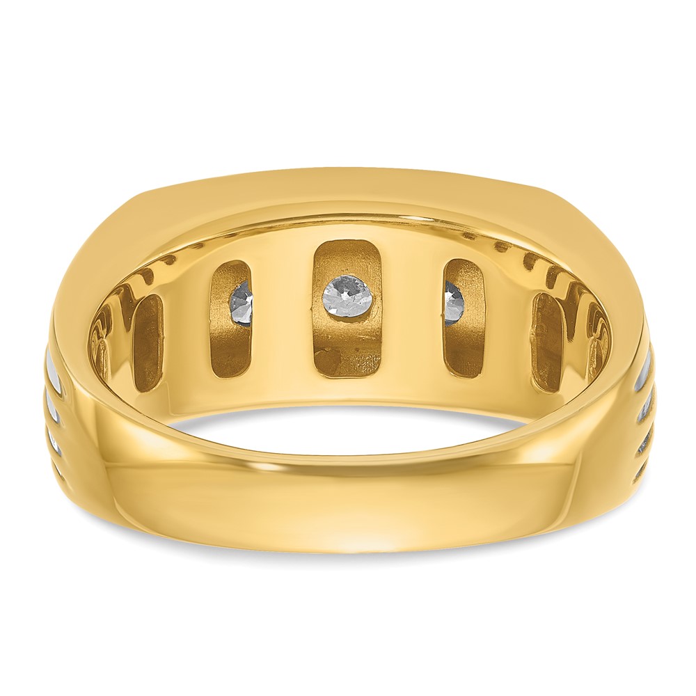 IBGoodman 14k with White Rhodium Men's Polished and Grooved 3-Stone 1/2 Carat AA Quality Diamond Ring