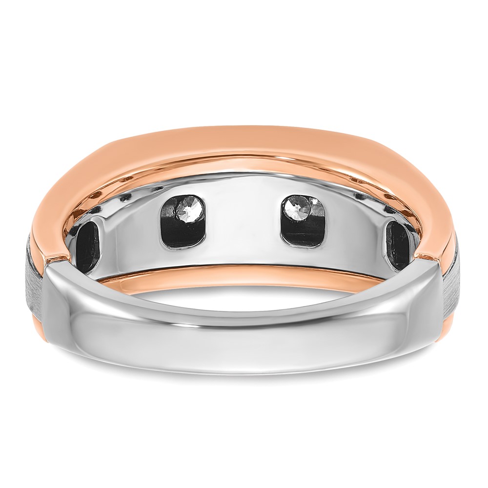 IBGoodman 14k White and Rose Gold Men's Polished Satin and Grooved 5-Stone 1/2 Carat AA Quality Diamond Ring