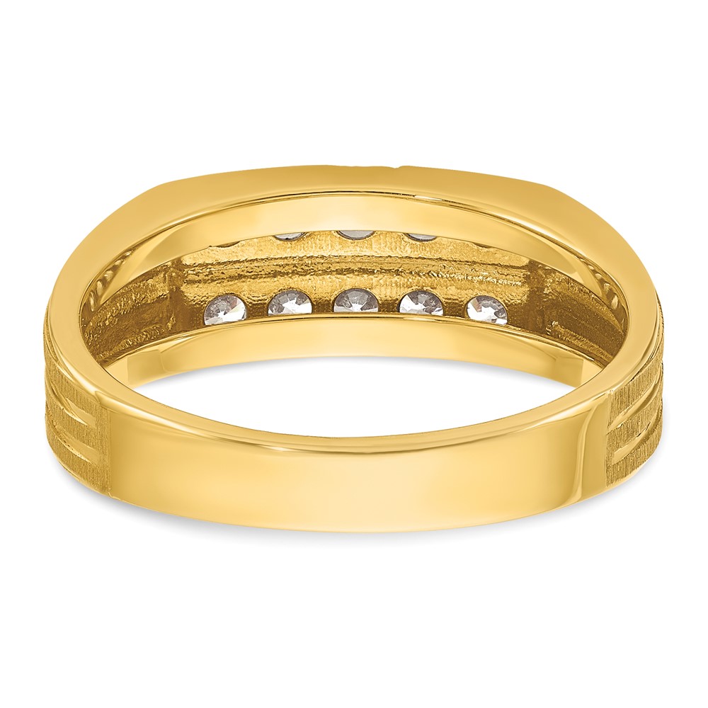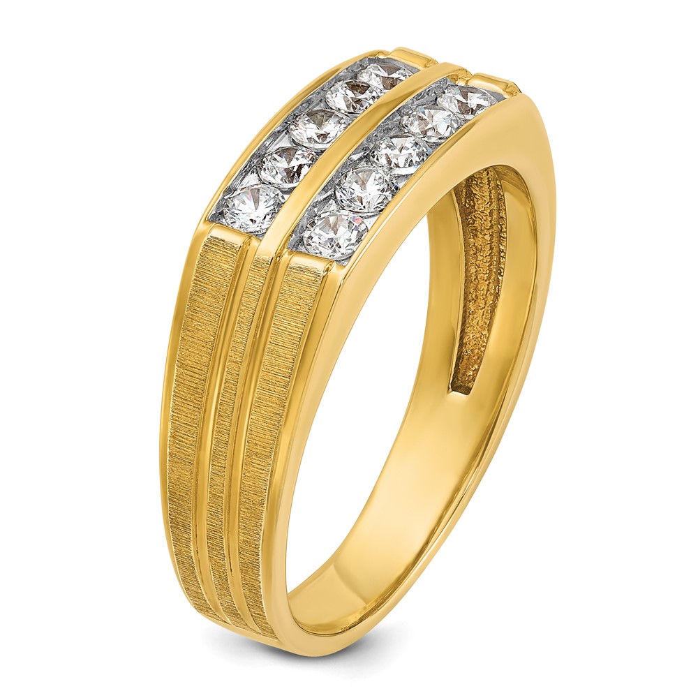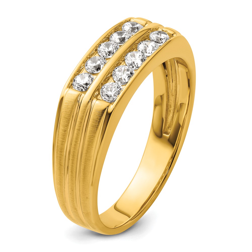IBGoodman 14k Men's Polished Satin and Grooved 2-Row 5/8 Carat AA Quality Diamond Ring