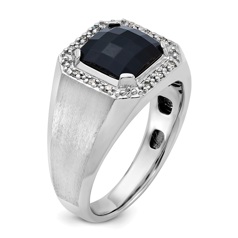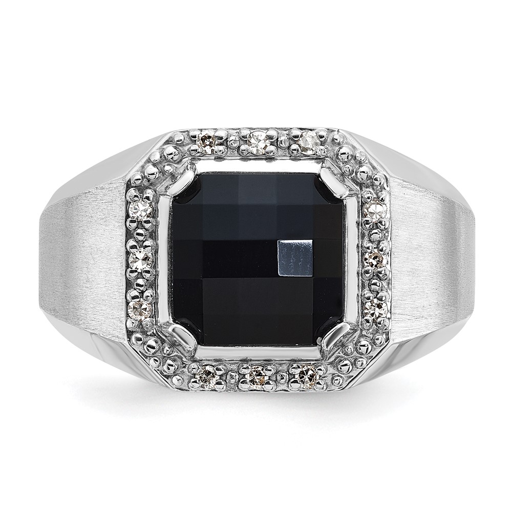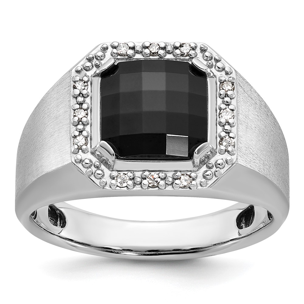 IB Goodman 14k White Gold Mens Cushion Onyx and 1/8 carat Diamond Complete Ring