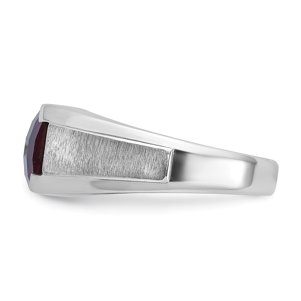 IB Goodman 14k White Gold Mens Cushion Lab Created Garnet and 1/20 carat Diamond Complete Ring