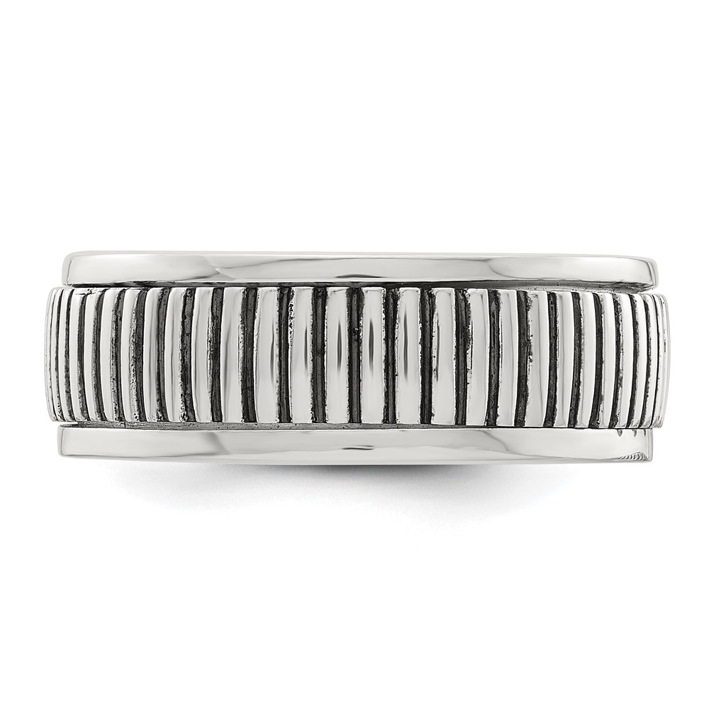 Sterling Silver Polished Oxidized Patterned Men's Ring