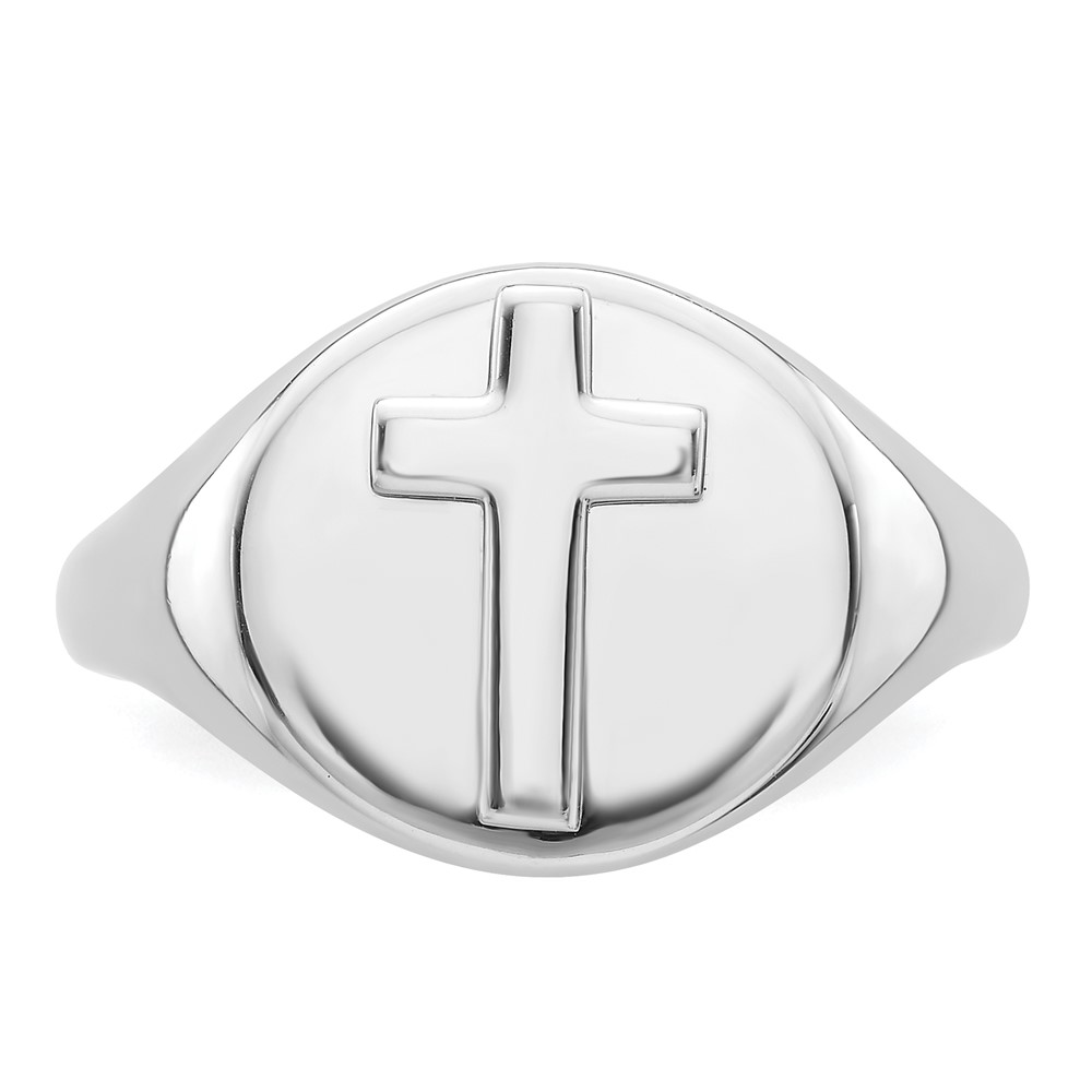 Sterling Silver Rhodium-plated Polished Cross Men's Ring