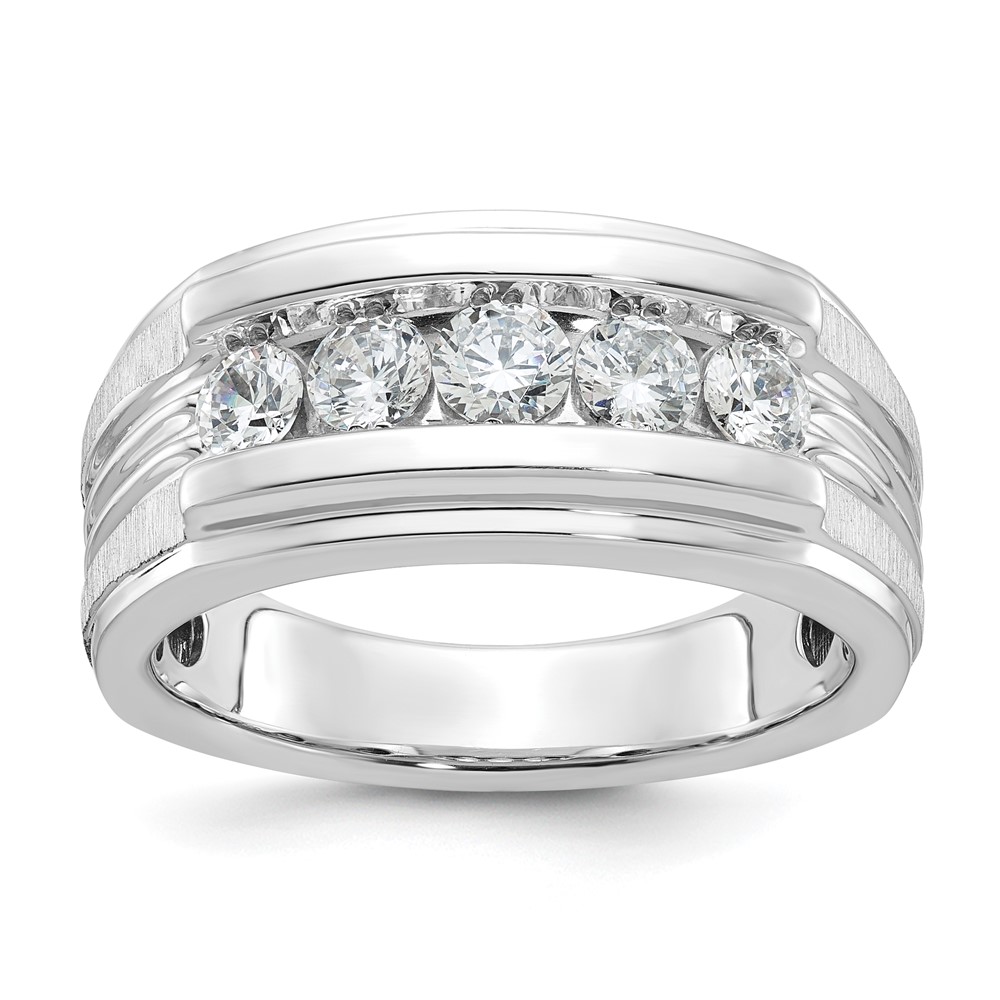IBGoodman 14k White Gold Men's Polished Brushed and Grooved 5-Stone 1 Carat A Quality Diamond Ring