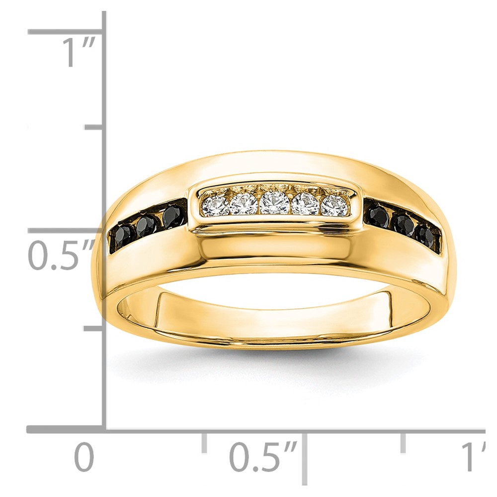 14K Yellow Gold Complete White and Black Diamond Men's Ring