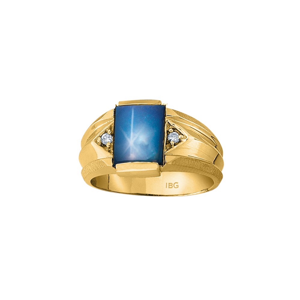 Men's Yellow Gold Created Blue Star Sapphire and Diamond Accent Ring .06ct