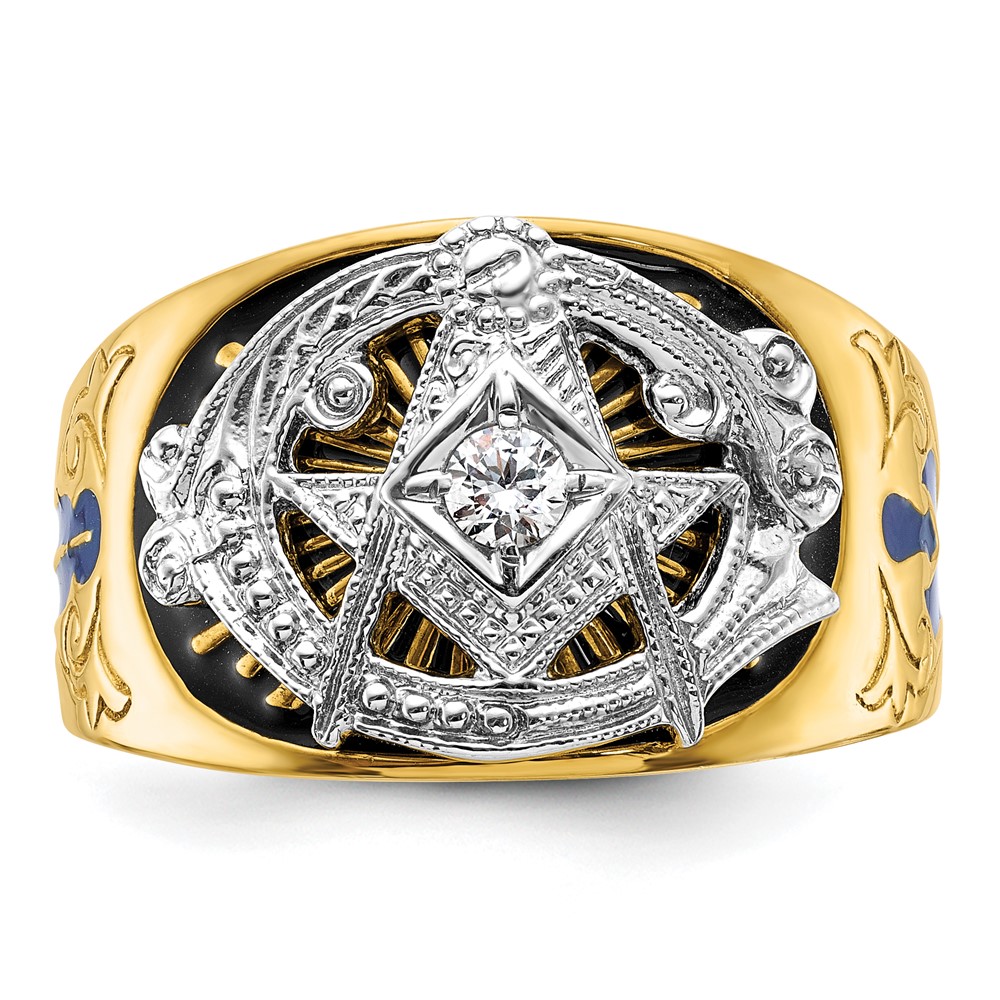 IBGoodman 10k Two-tone Men's Polished and Textured with Blue and Black Enamel Diamond Blue Lodge Master Masonic Ring