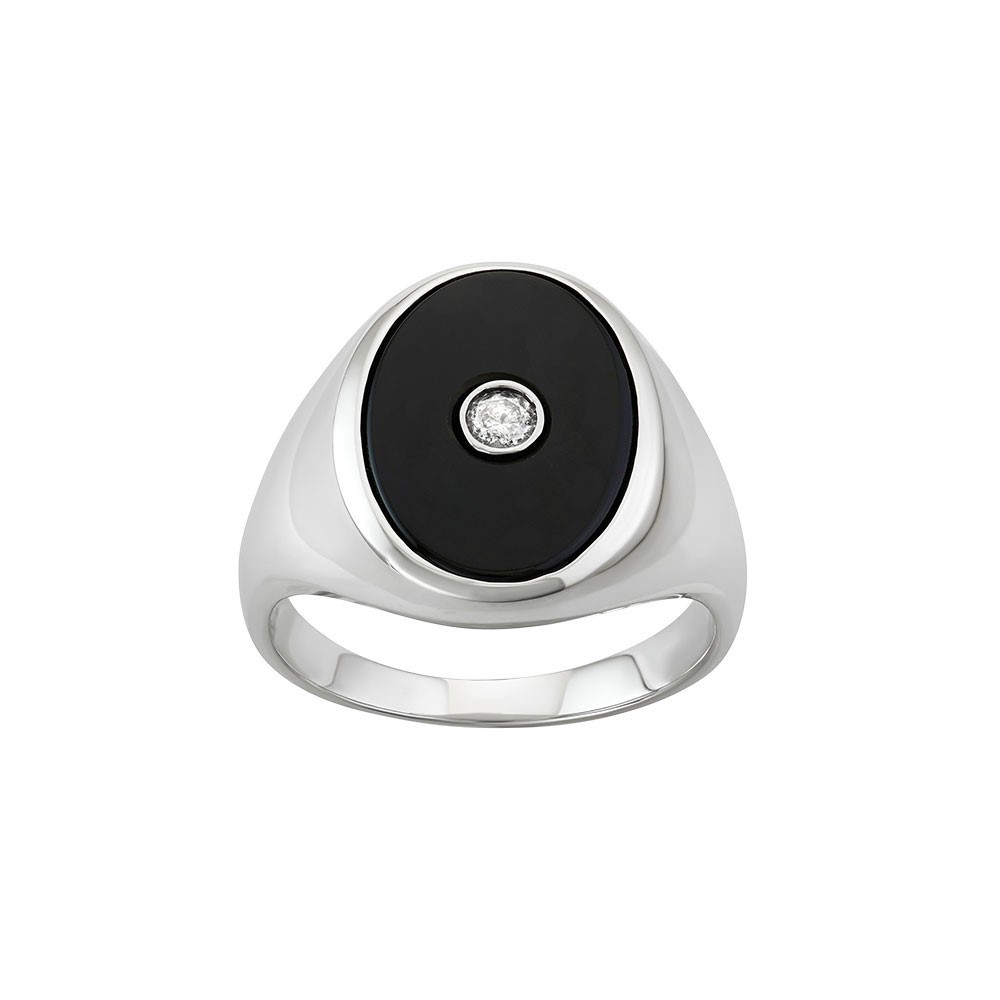 10k Men's Yellow Gold Diamond Solitaire and Oval Onyx Ring 1/10ct
