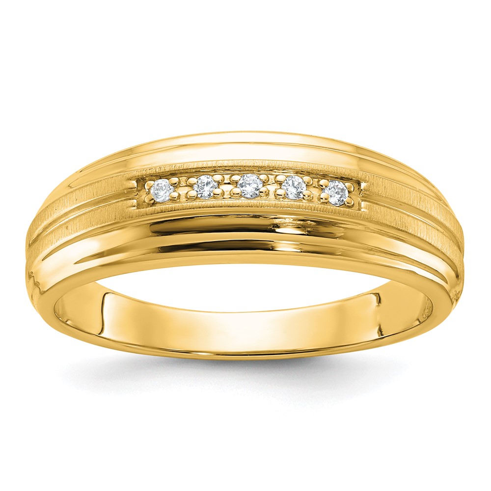 IBGoodman 10k Men's Polished Satin and Grooved 5-Stone 1/20 Carat A Quality Diamond Ring