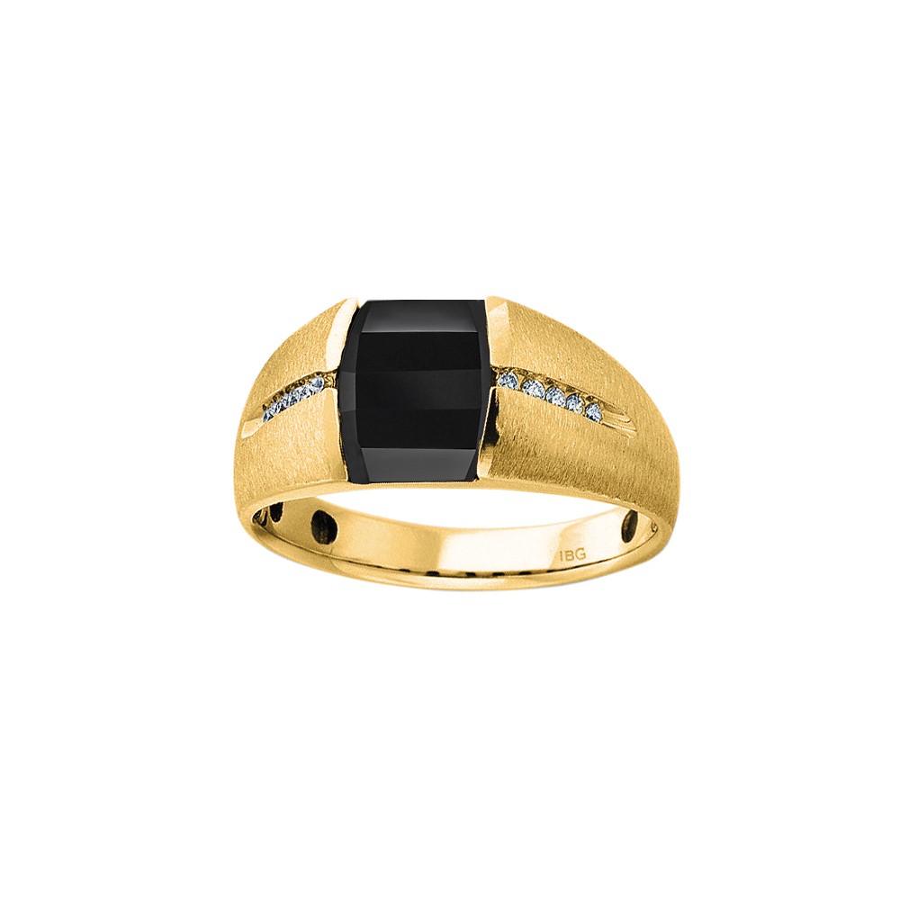 Men's Yellow Gold Onyx and Diamond Ring 1/10ct TDW