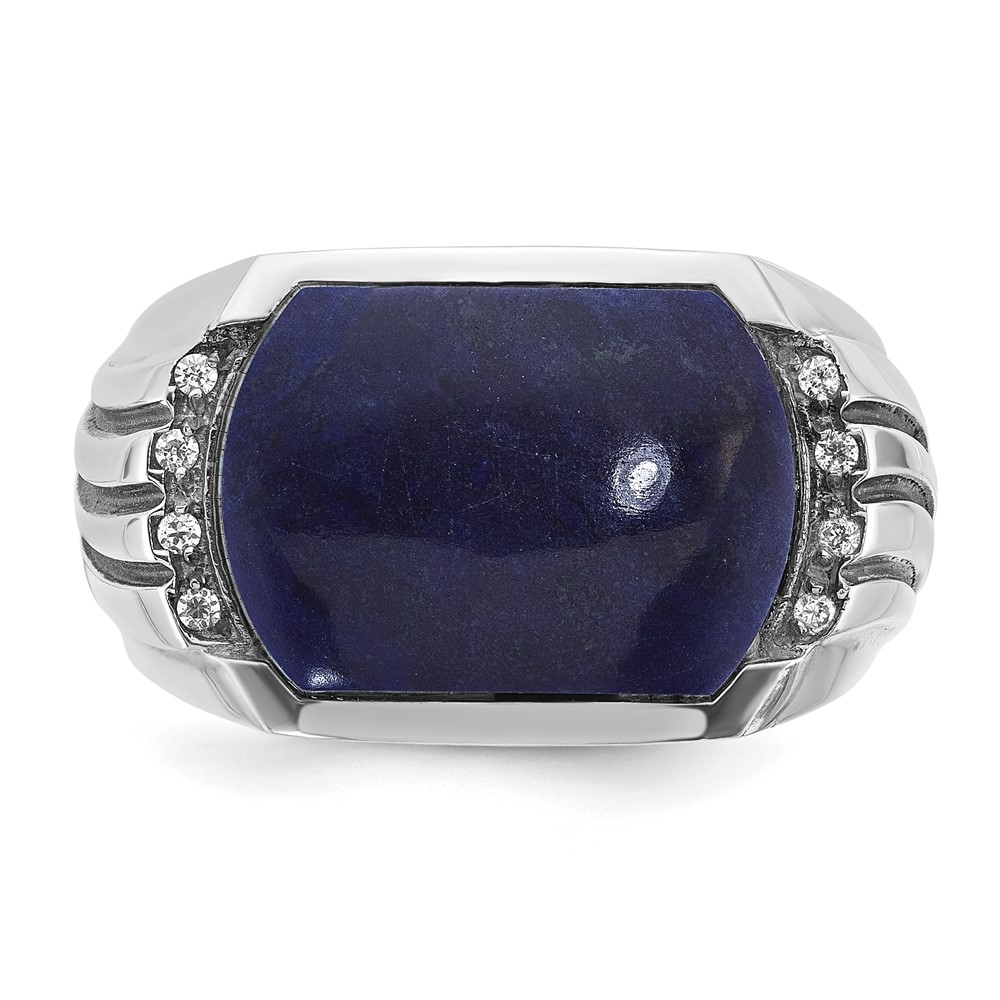 IB Goodman 14k White Gold with Black Rhodium Mens Lapis and Diamond Complete Ring