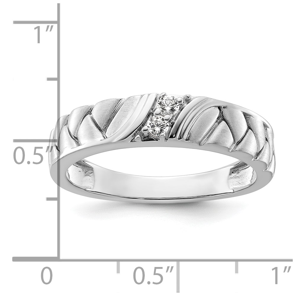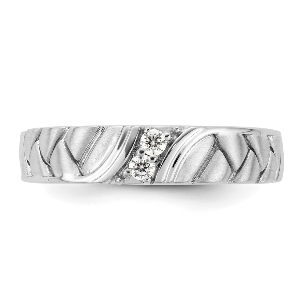 14k White Gold Polish & Satin Woven Design Diamond Mens Wedding Band