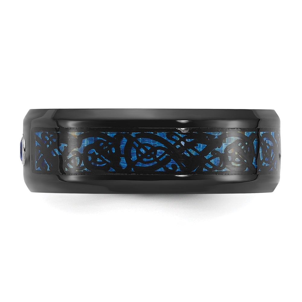 Chisel Stainless Steel Polished Black and Blue IP-plated with CZ Carbon Fiber Inlay in Clear Epoxy 8mm Band
