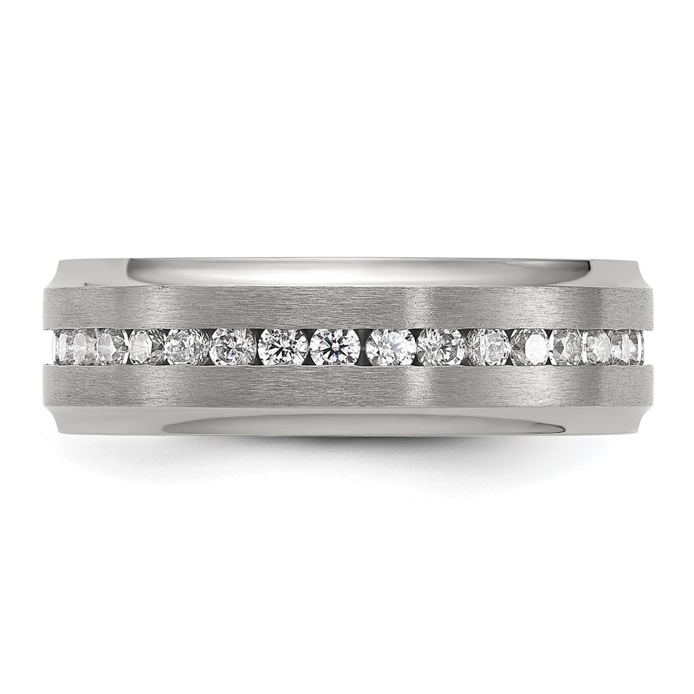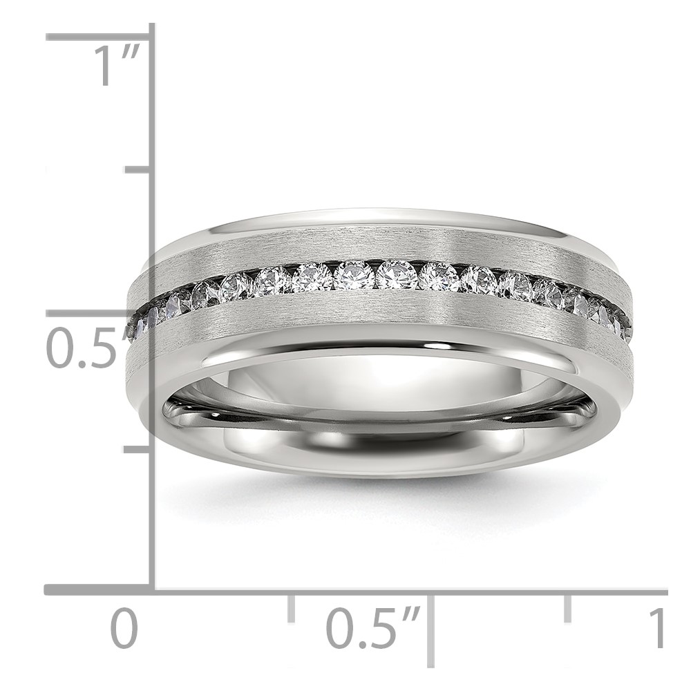 Chisel Titanium Polished with Brushed Center and CZ 7mm Band