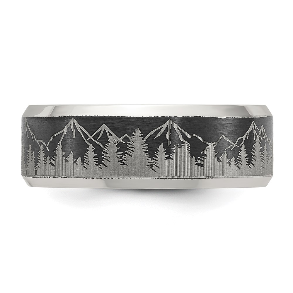 Chisel Titanium with Brushed Center Laser Design Mountains 8mm Band