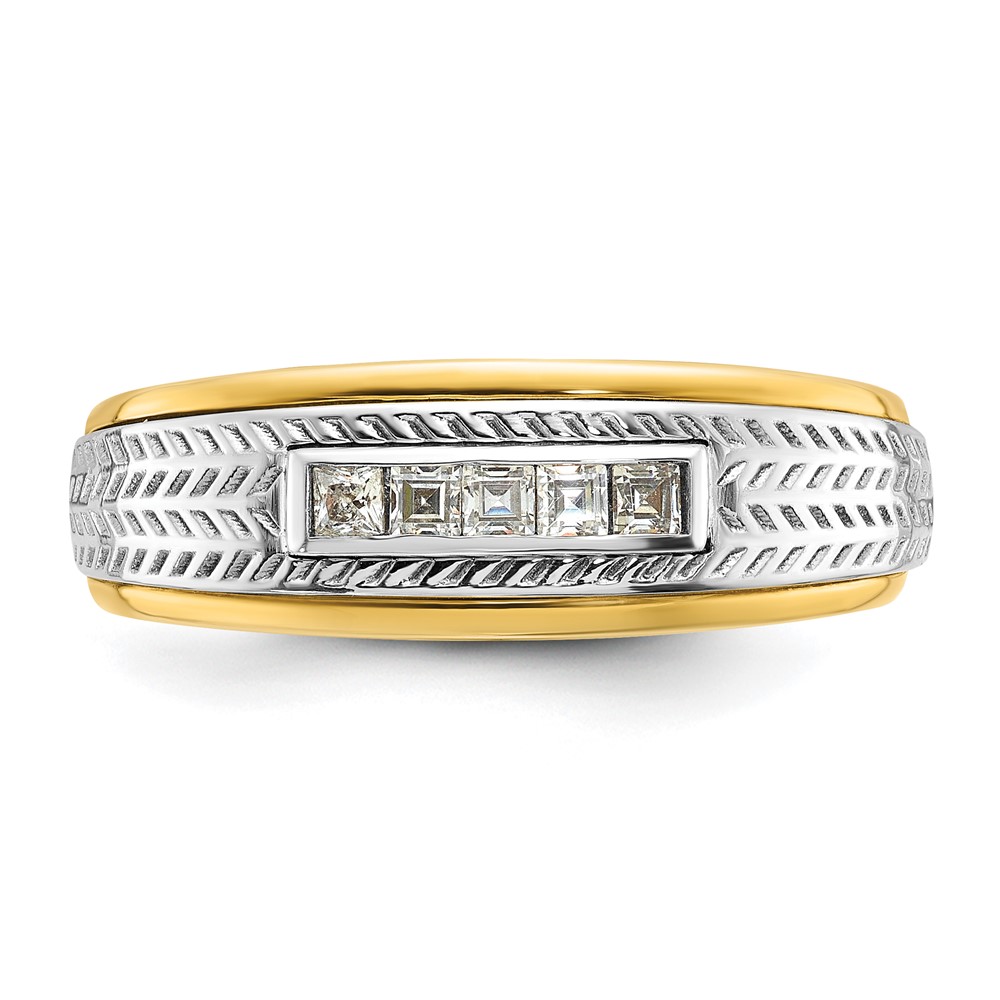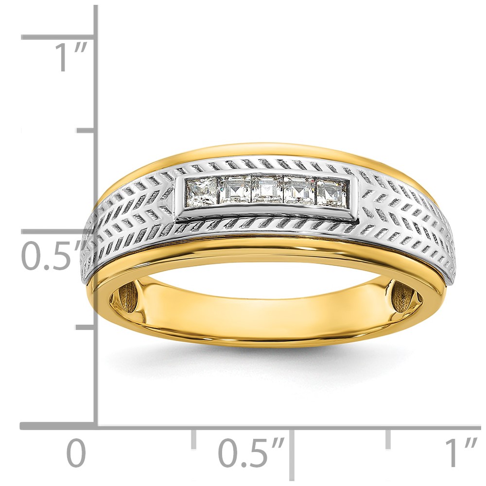 IBGoodman 14k Two-tone Men's Polished and Textured 5-Stone 1/4 Carat BB Quality Princess-cut Diamond Ring