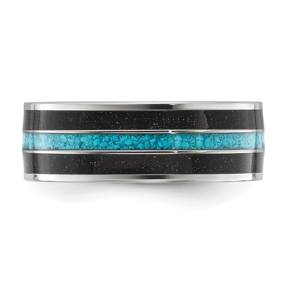 Chisel Stainless Steel Polished with Turquoise and Black Star Sandstone Inlay 8mm Band