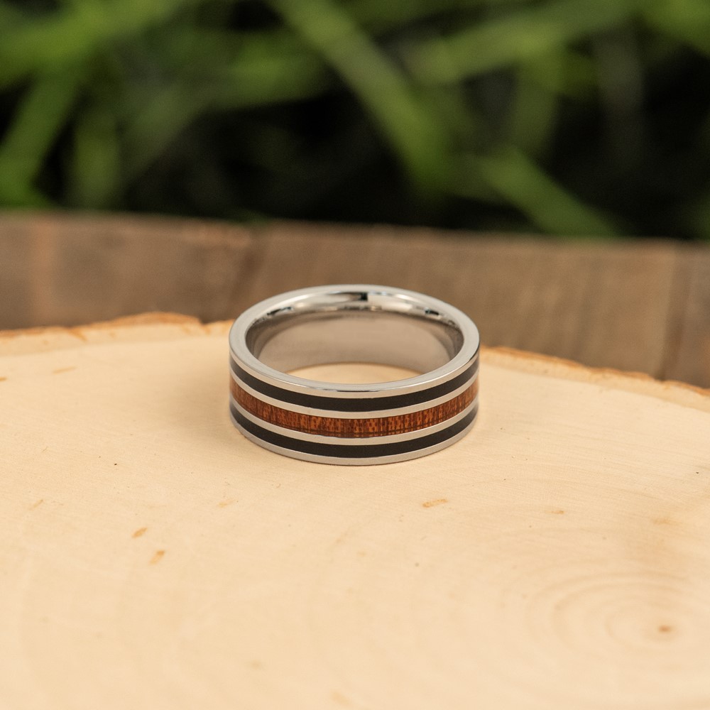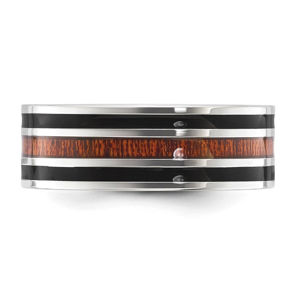 Chisel Stainless Steel Polished with Black Resin and Wood Inlay 8mm Band
