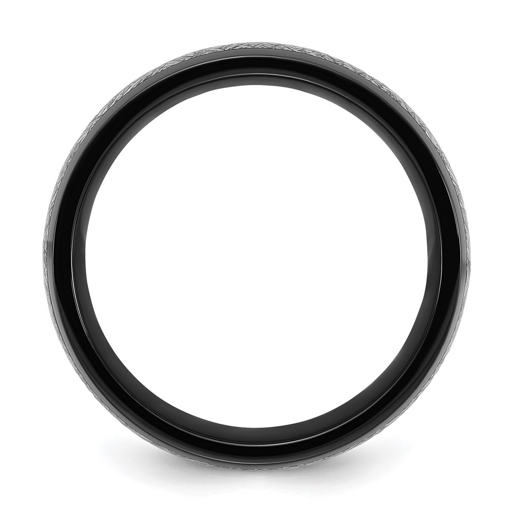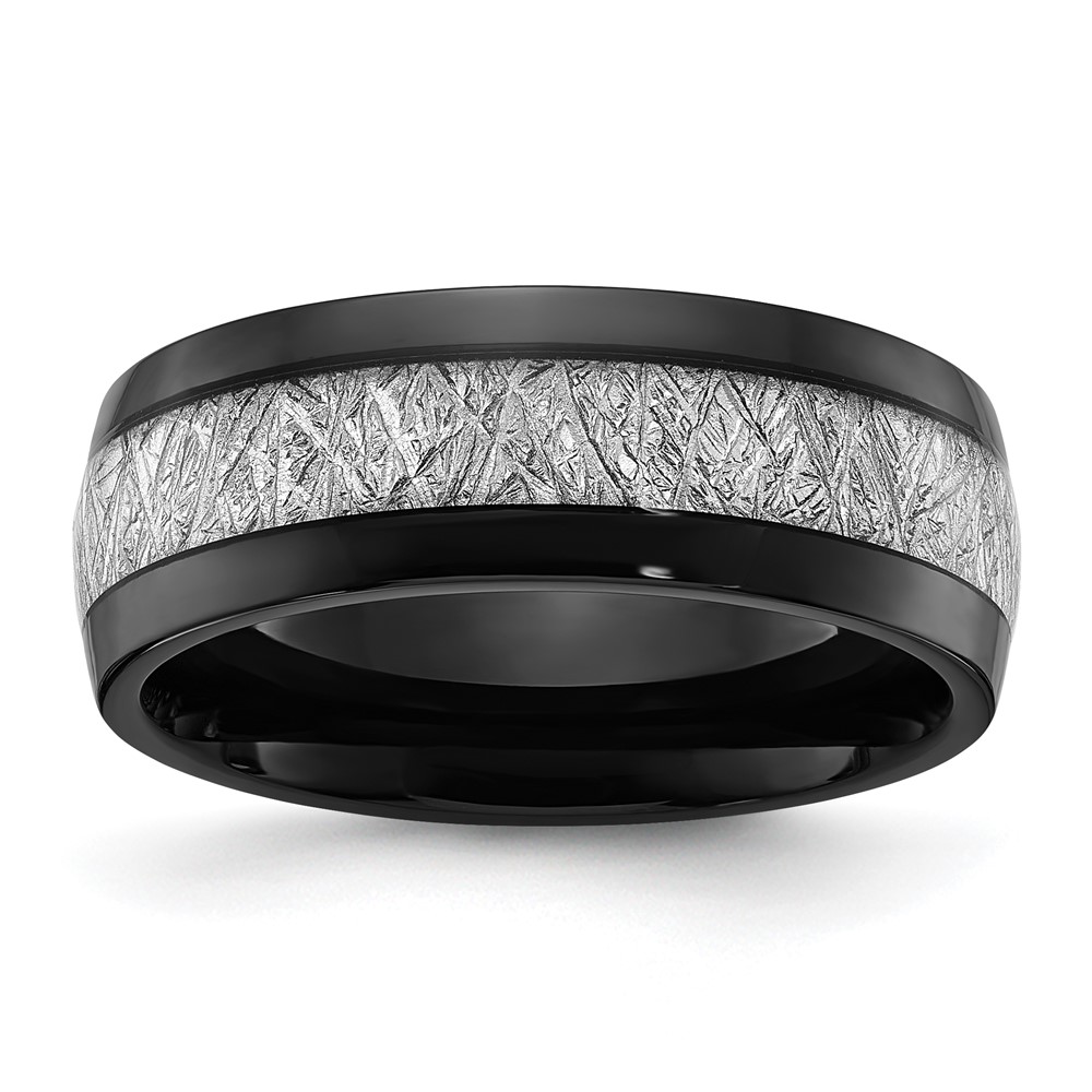 Chisel Stainless Steel Polished Black IP-plated with Imitation Meteorite Inlay 8mm Band