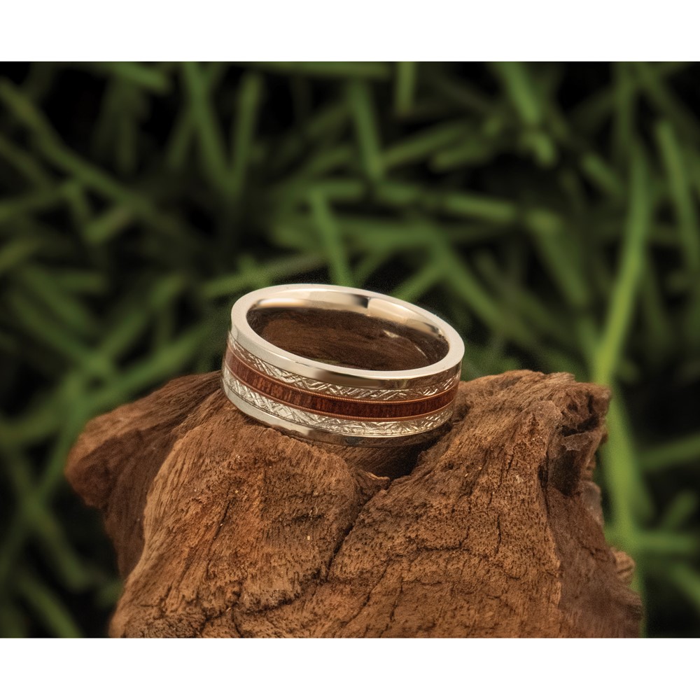 Chisel Stainless Steel Polished with Wood and Imitation Meteorite Inlay 8mm Band