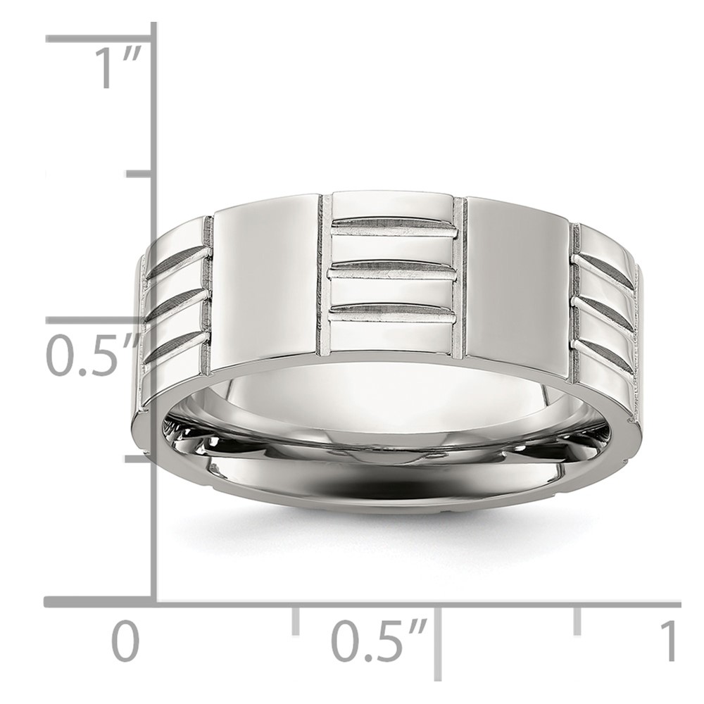 Chisel Titanium Brushed and Polished Grooved 8mm Band