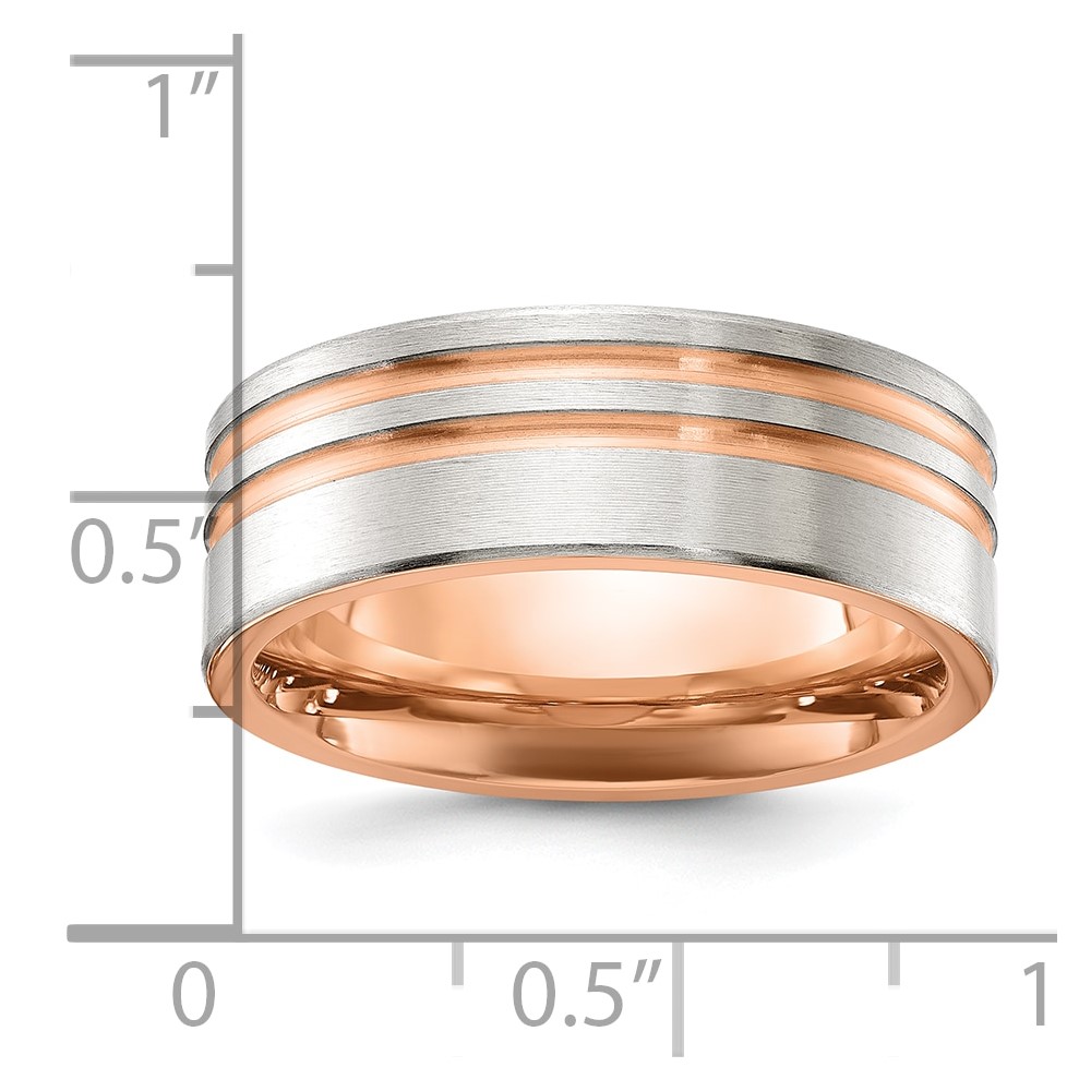 Chisel Titanium Brushed and Polished Rose IP-plated Stripes 8mm Band
