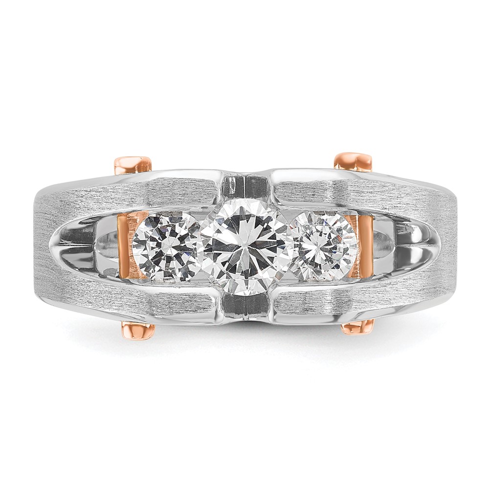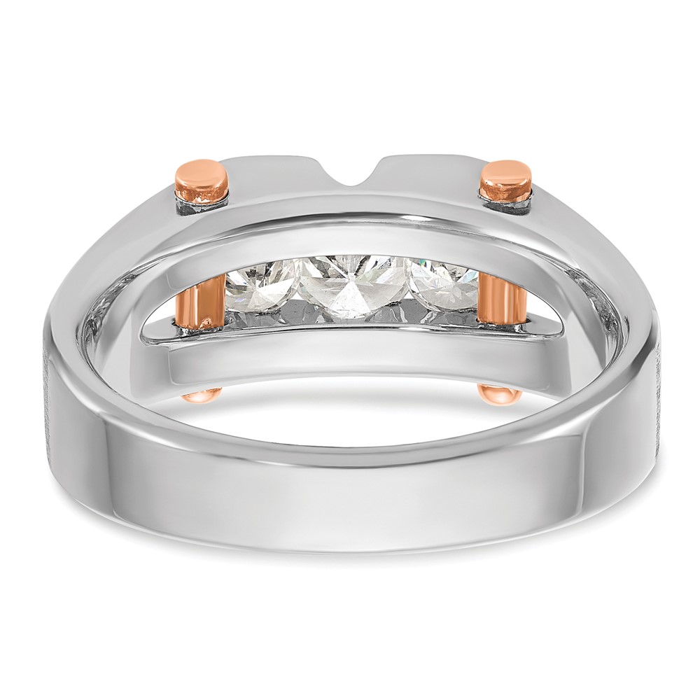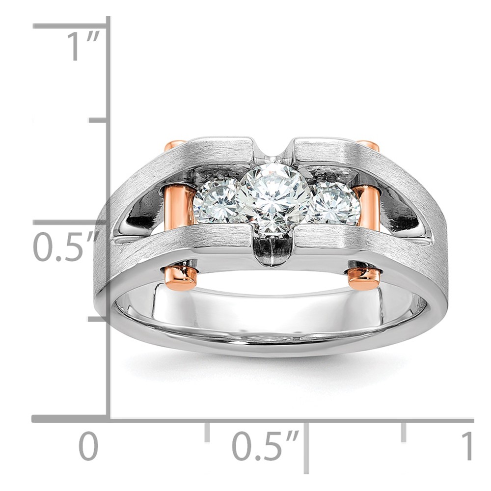 IBGoodman 14k White and Rose Gold Men's Polished Satin and Cut-Out 3-Stone 3/4 Carat BB Quality Diamond Ring