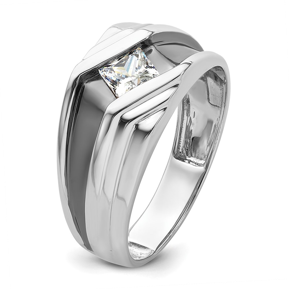 IBGoodman 14k White Gold with Black Rhodium 1/2 carat Lab Grown Diamond VS/SI+ G+ Complete Satin Men's Ring