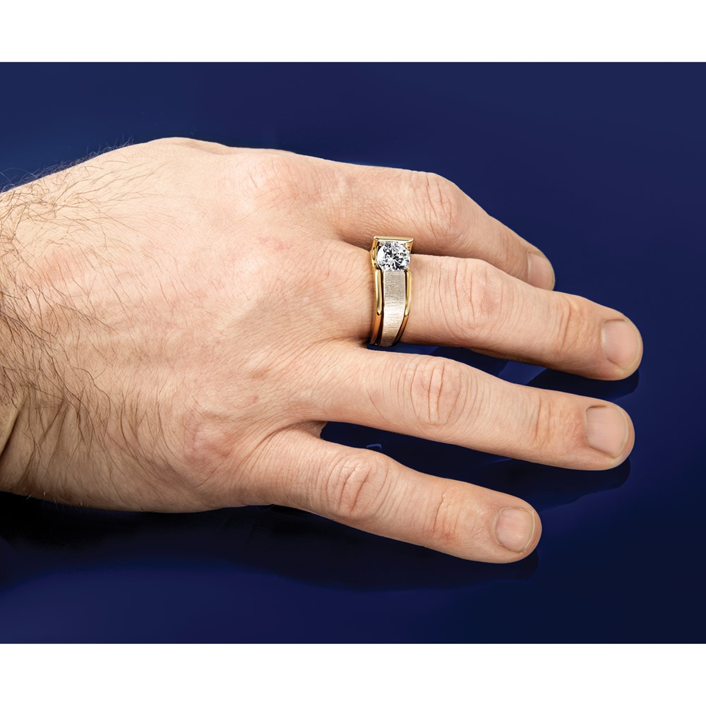 IBGoodman 14k Two-tone 1 1/4 carat Lab Grown Diamond VS/SI+ G+ Complete Polished and Brushed Men's Ring