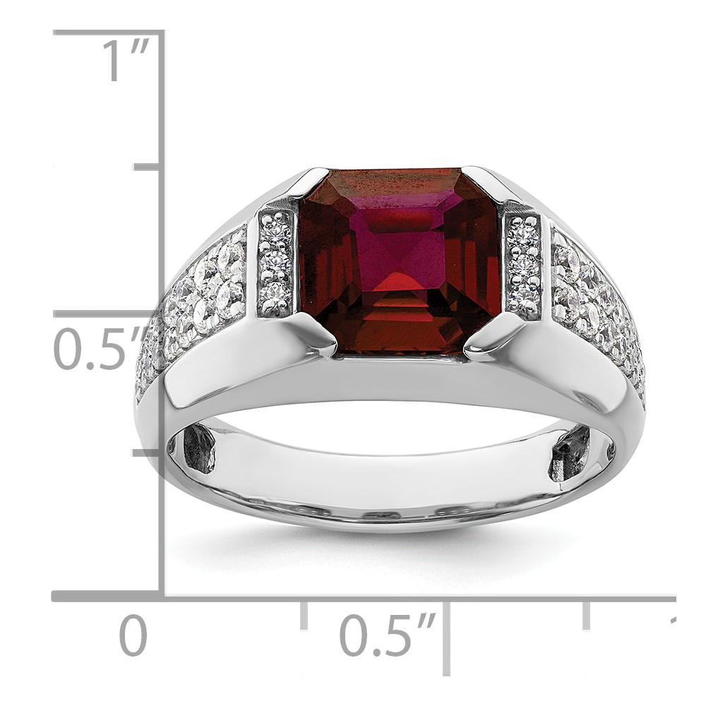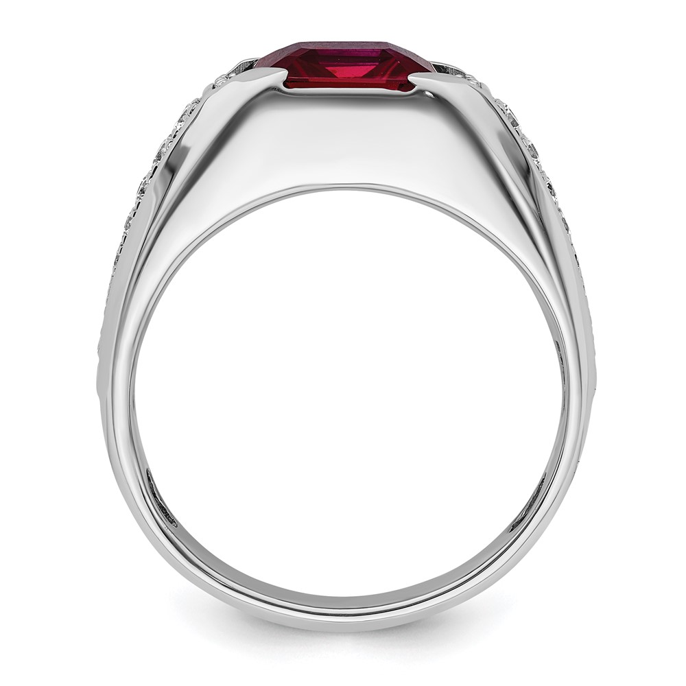 IBGoodman 14k White Gold 5/8 carat Lab Grown Diamond VS/SI+ G+ and Created Ruby Complete Men's Ring