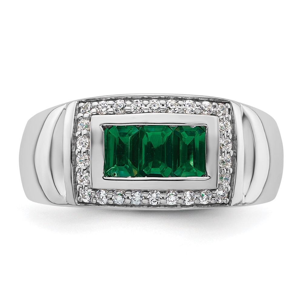 IBGoodman 14k White Gold 1/3 carat Lab Grown Diamond VS/SI+ G+ and Created Emerald Complete Men's Ring