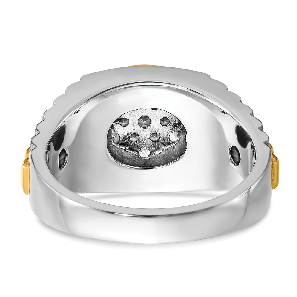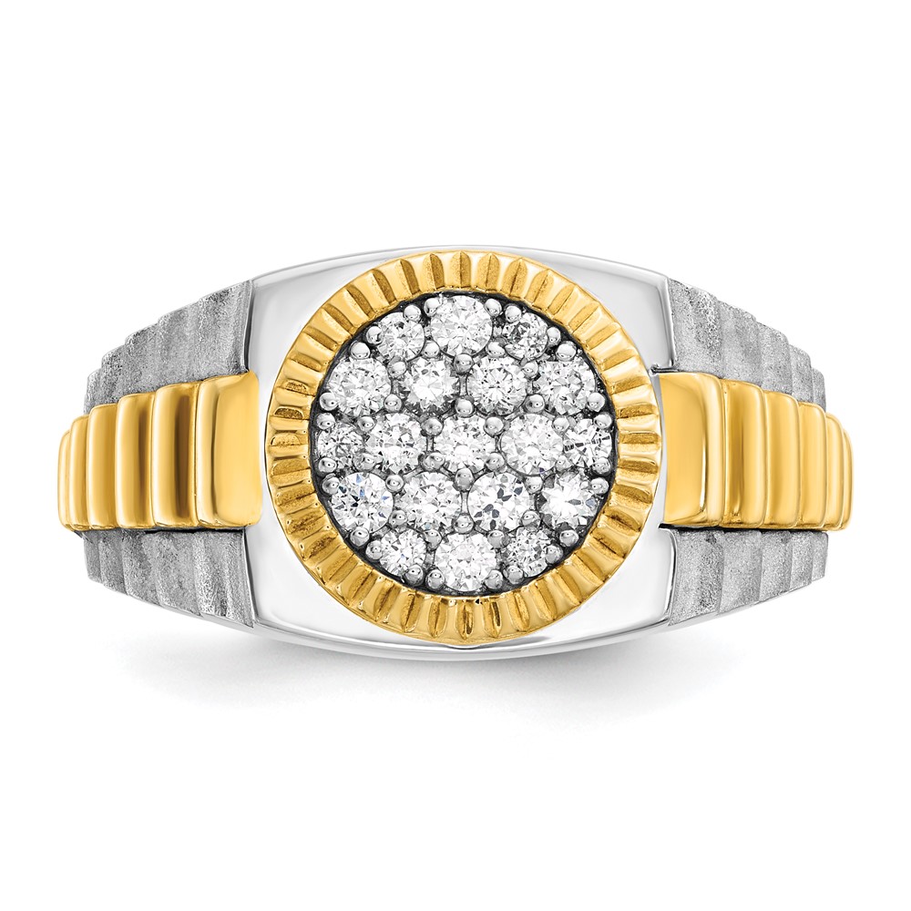 IB Goodman 14k White Gold Polished Black and White Sapphire Cluster Mens Ring