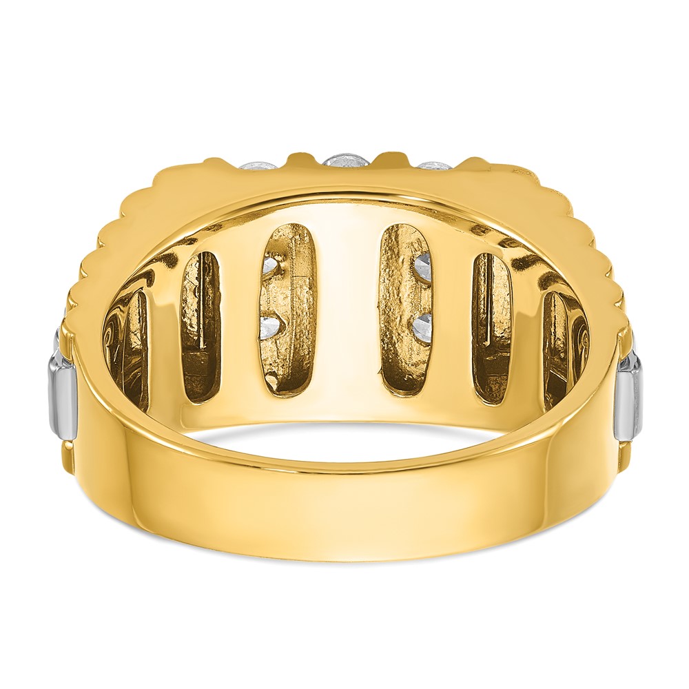IBGoodman 14k Two Tone 1 carat Lab Grown Diamond VS/SI+ G+ Complete Grooved Four Row Men's Ring