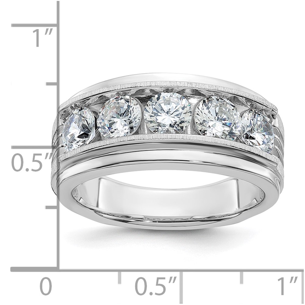 IBGoodman 14k White Gold 2 carat Lab Grown Diamond VS/SI+ G+ Five Stone Complete Polished Satin and Grooved Men's Ring