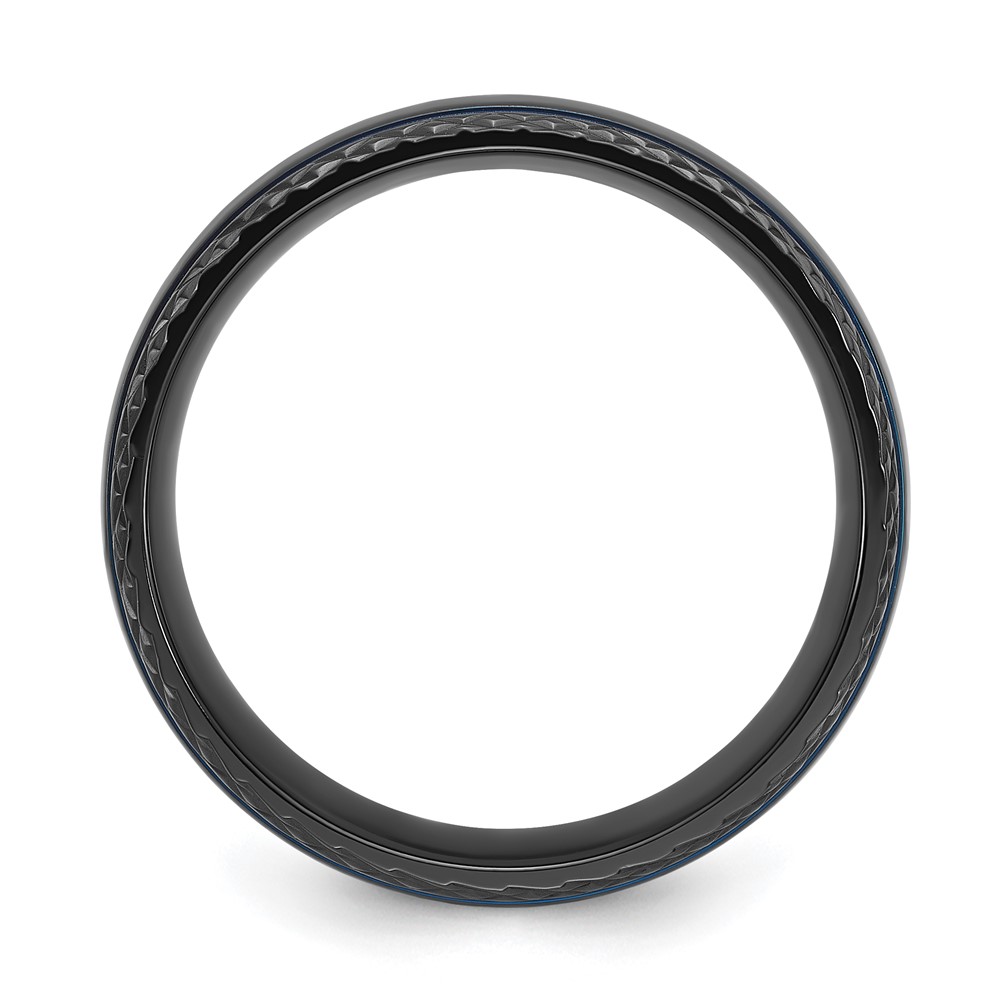 Chisel Black Zirconium Polished Blue IP-plated with Textured Edge 8mm Band