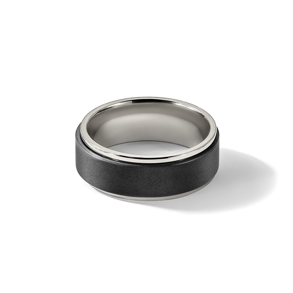 Chisel Titanium Polished with Brushed Black Zirconium Rotating Inner Channel 8mm Band