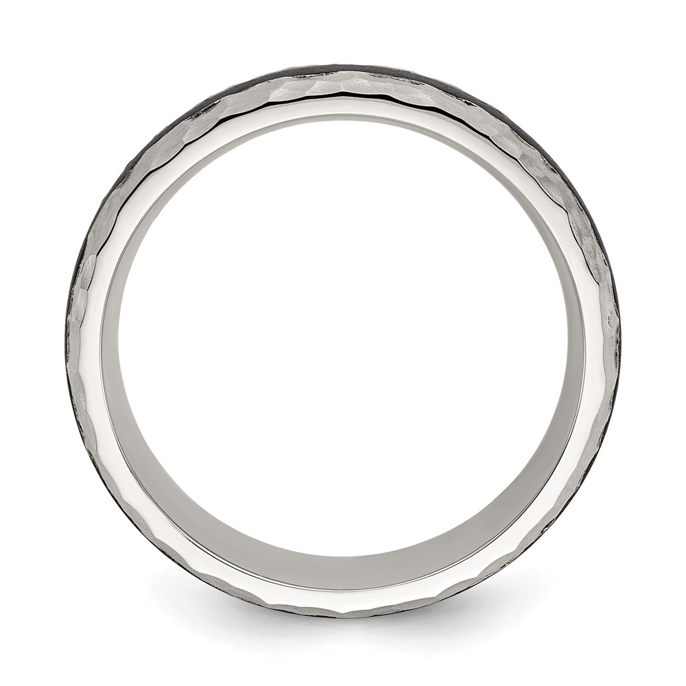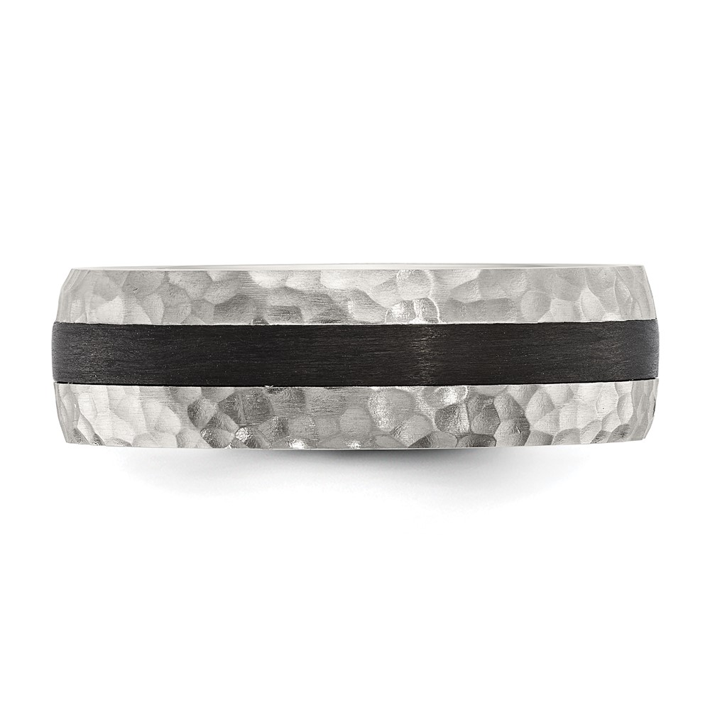 Chisel Stainless Steel Brushed and Hammered Black Carbon Fiber Inlay 7mm Band