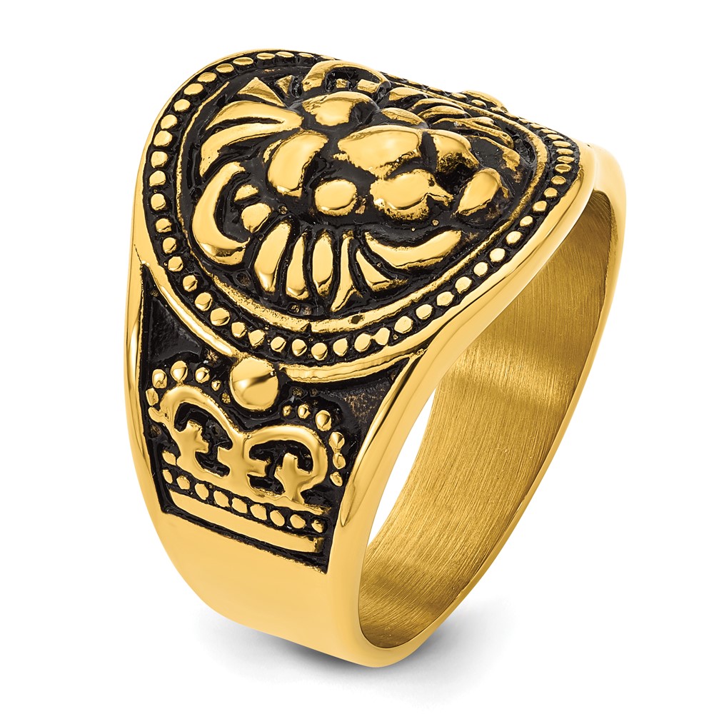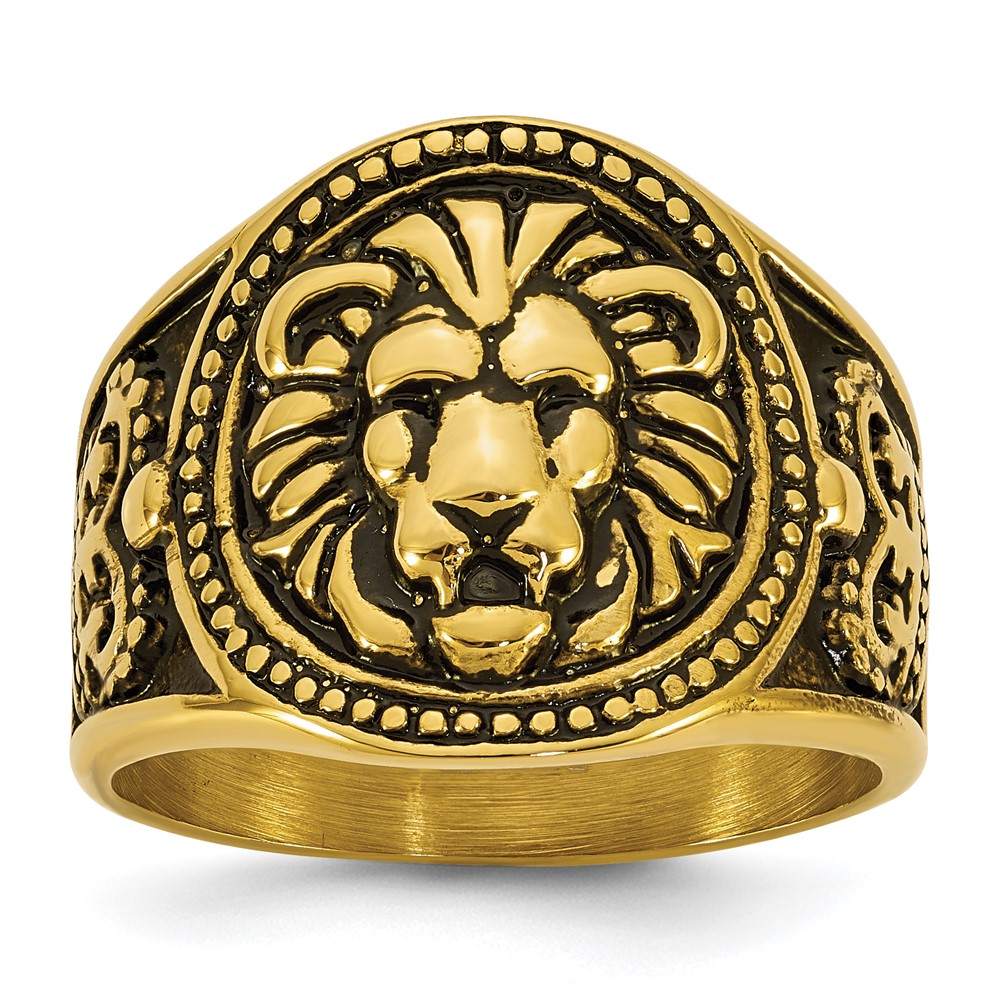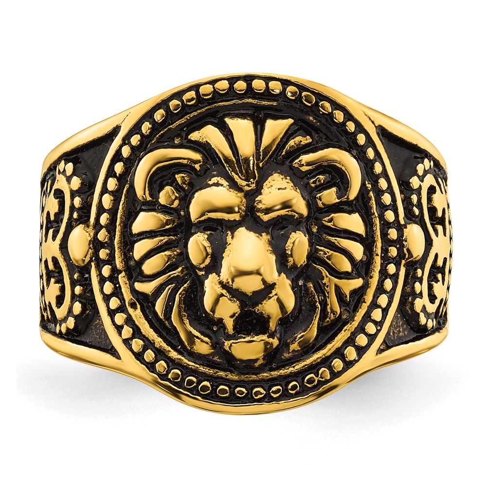 Stainless Steel Yellow IP Antiqued and Polished Lion Ring