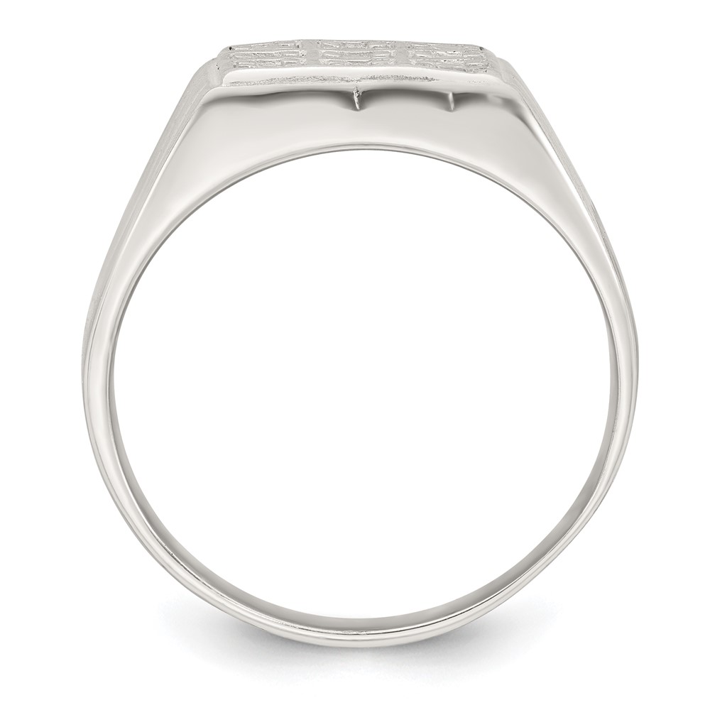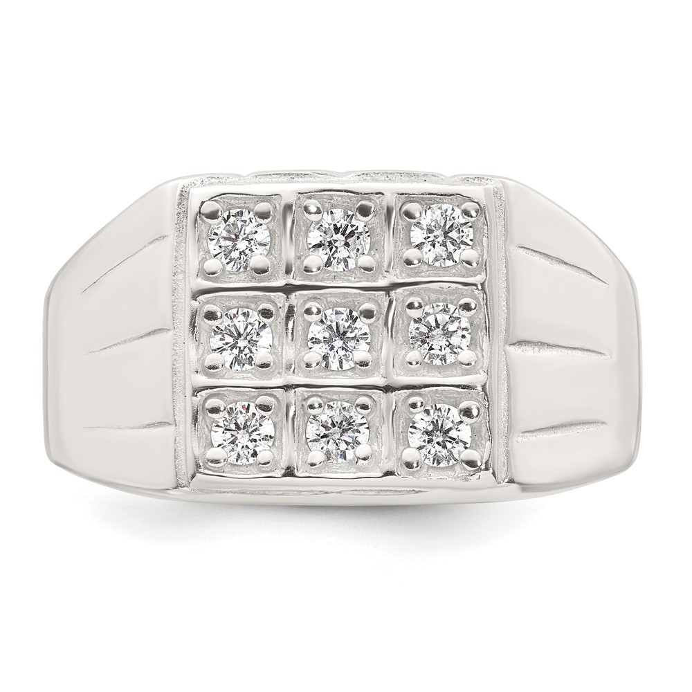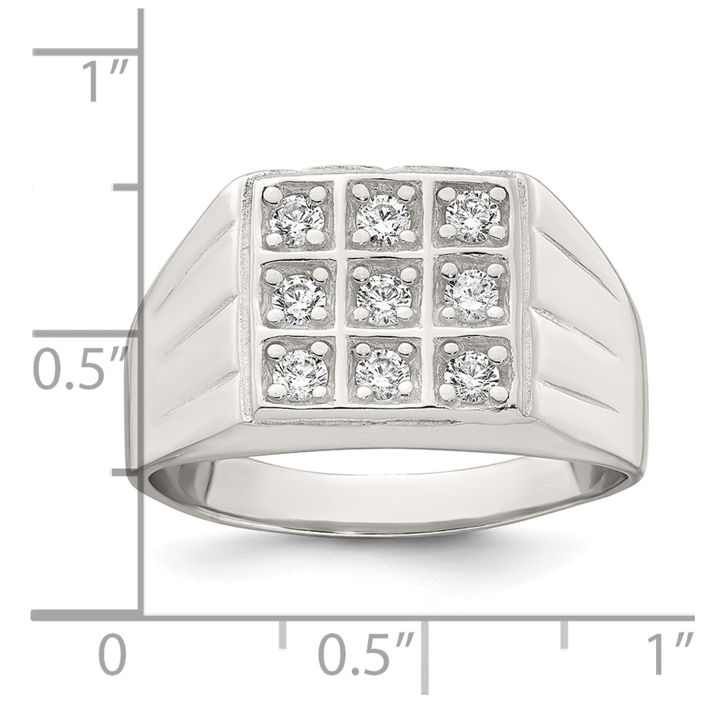 Sterling Silver Polished and Grooved White CZ Square Size 11 Mens Ring