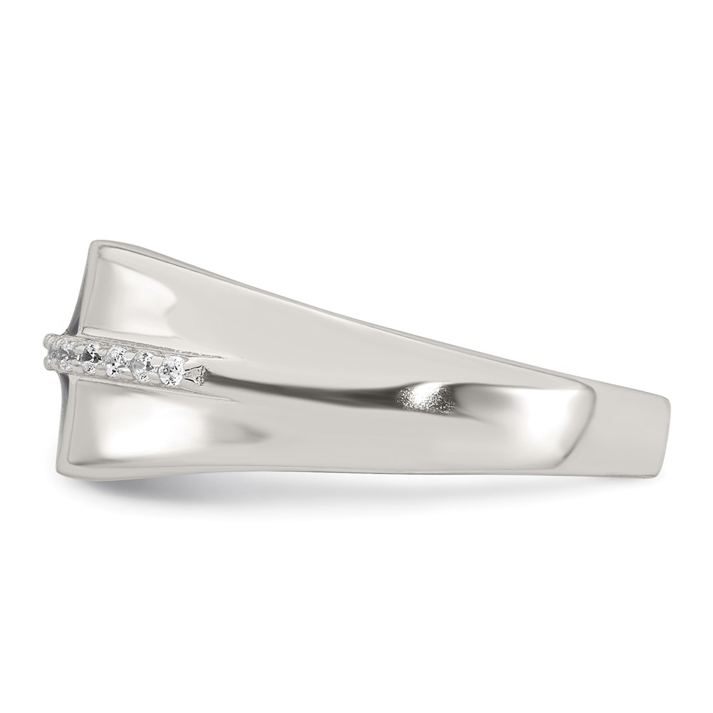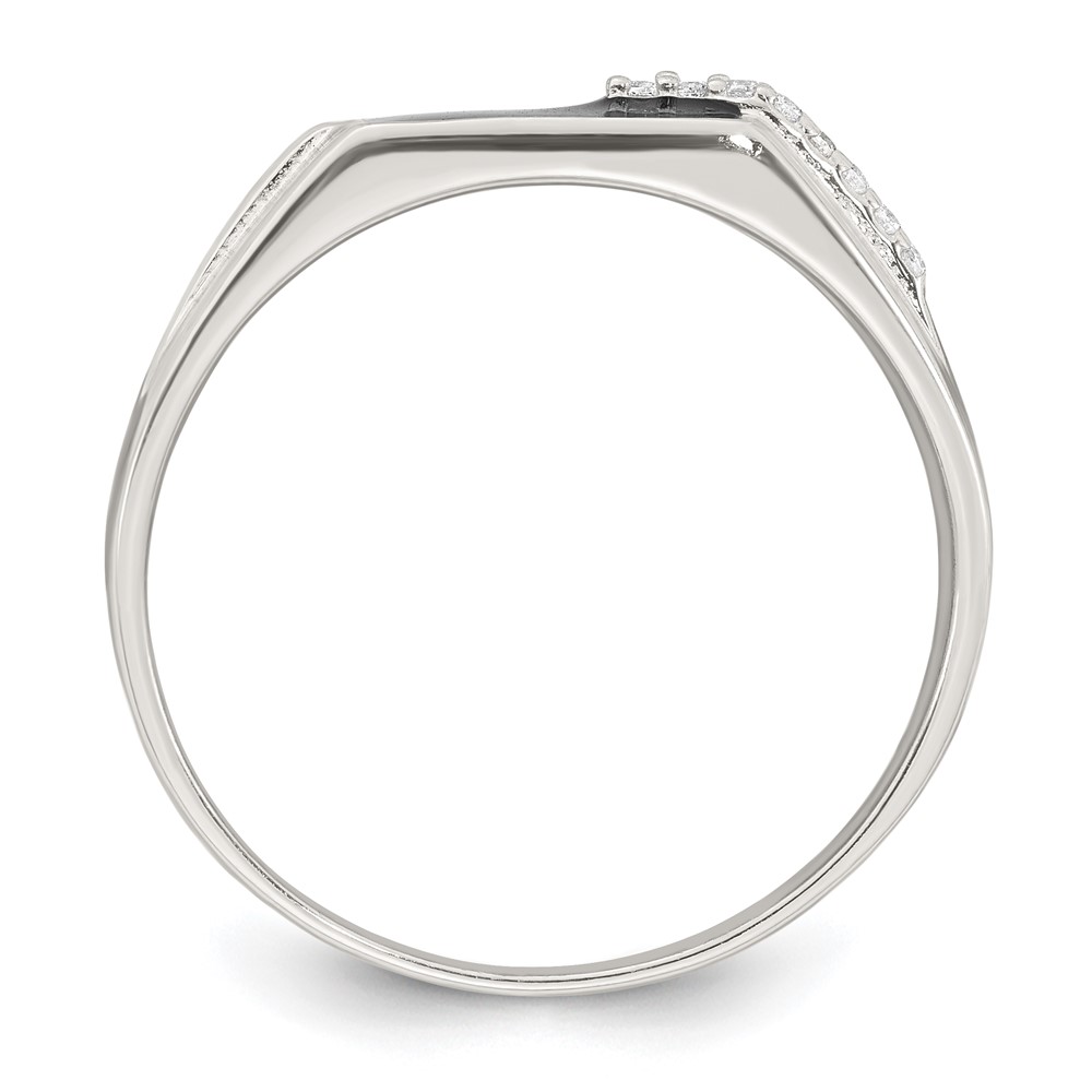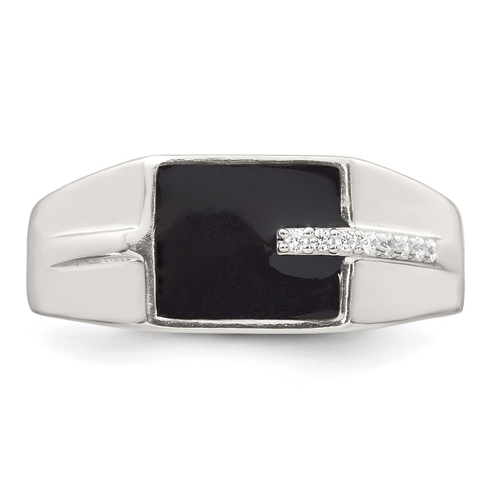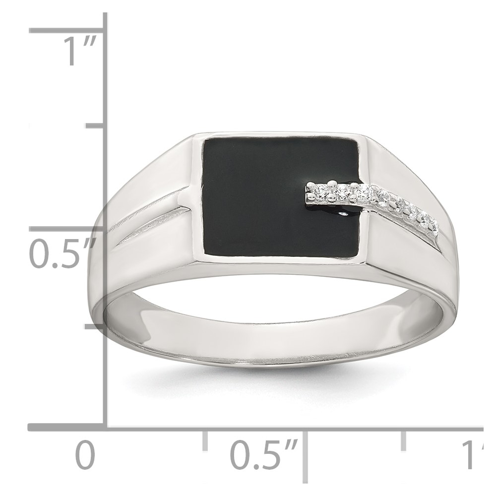 Sterling Silver Polished Black Enameled and White CZ Size 10 Mens Signet Ring
