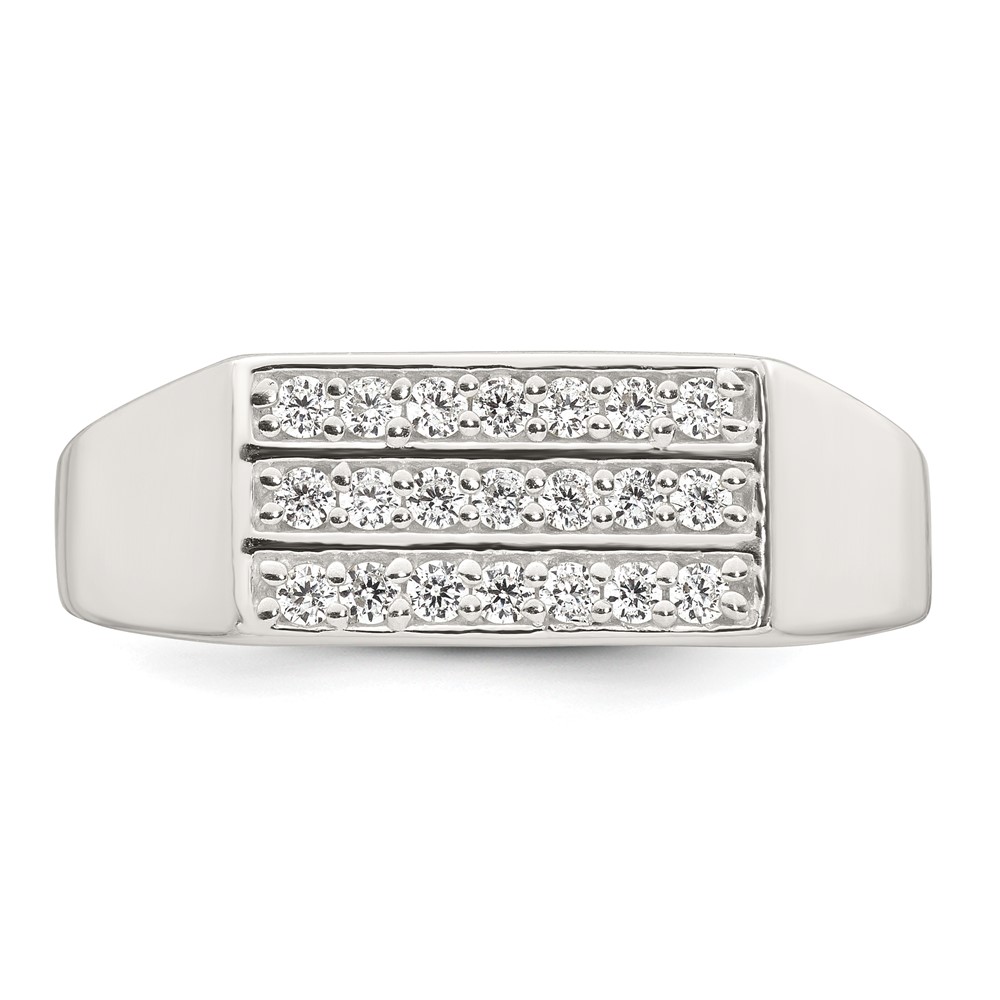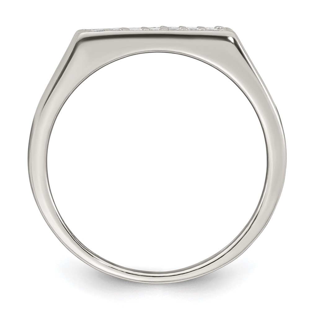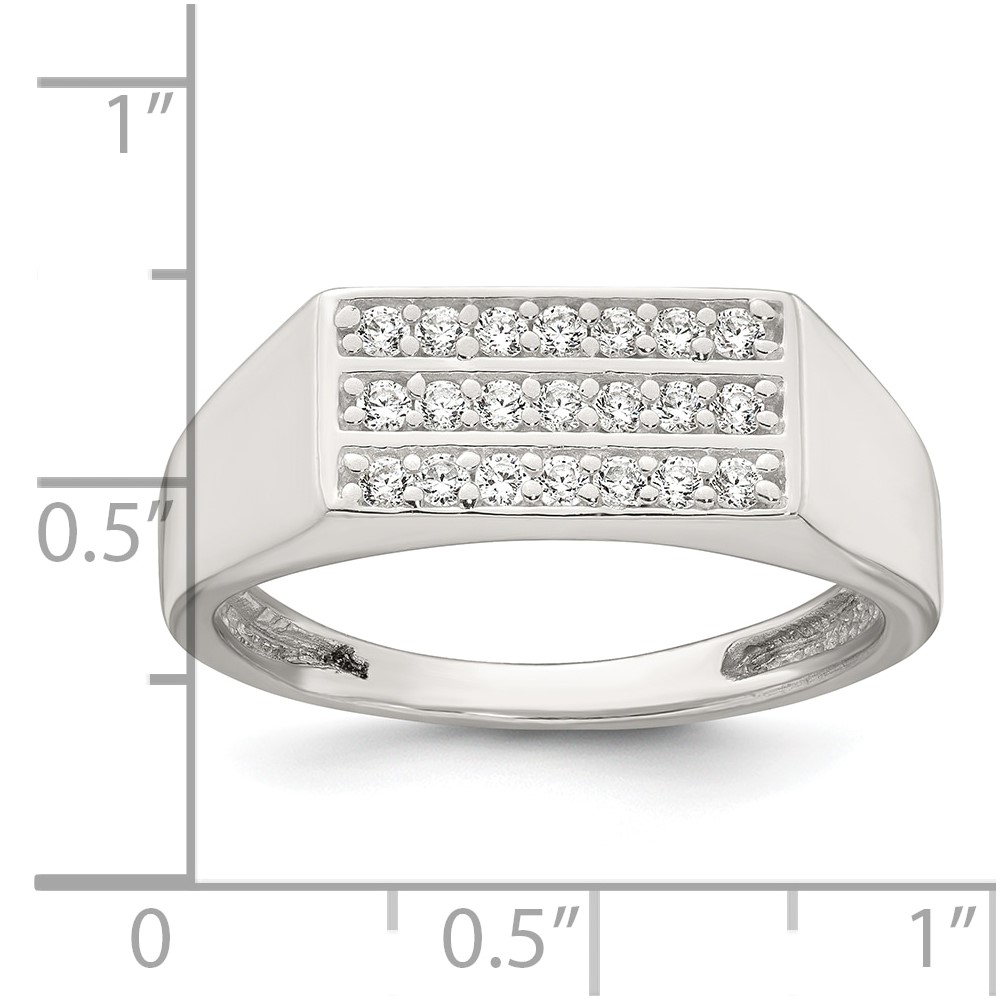 Sterling Silver Polished White CZ Rectangular Size 10 Mens Ring