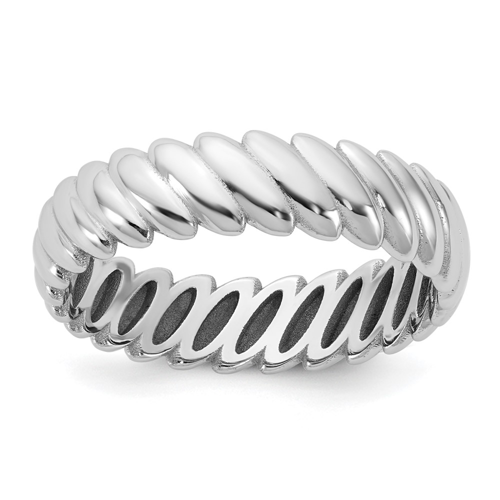 14k White Gold IB Goodman Mens Polished Twisted 6mm Ring