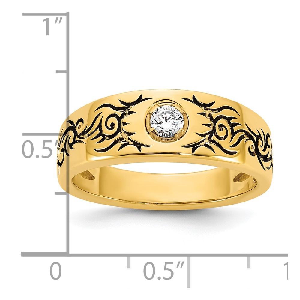 14ky Antiqued IB Goodman Flame Mens Complete 1/5ct Diamond Ring