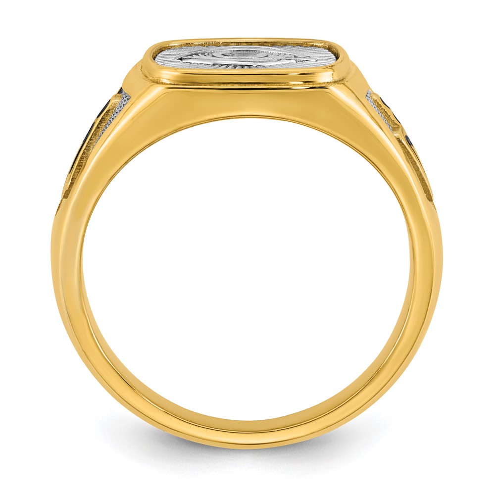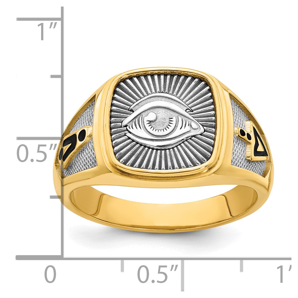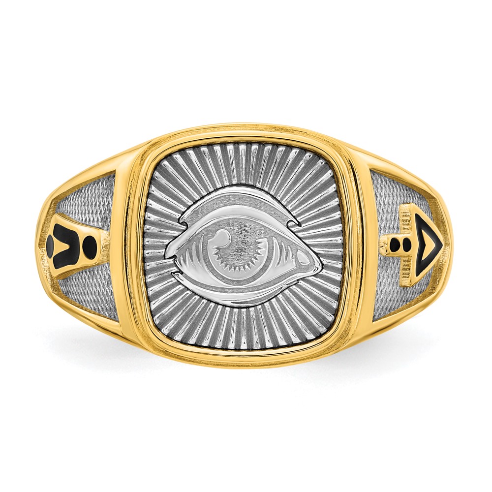 14K Two-tone IBGoodman Men's Black Enamel Masonic Eye Ring