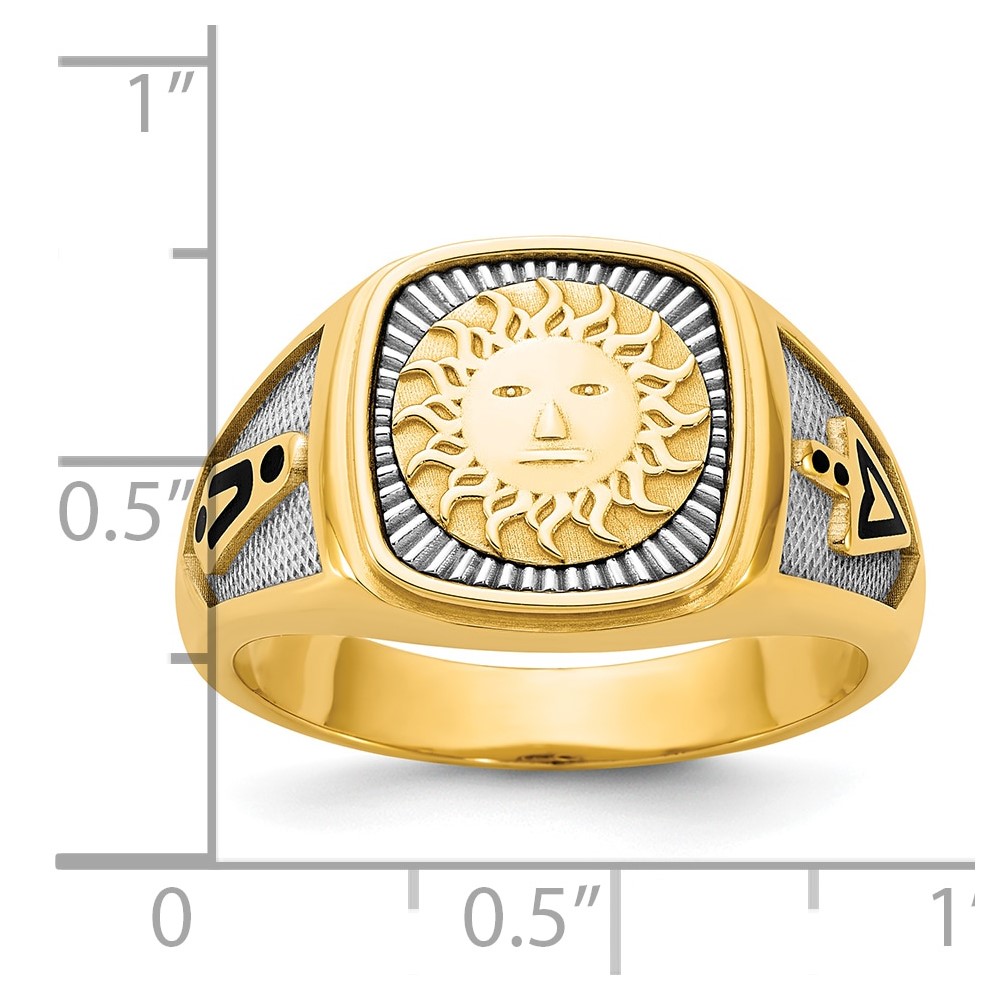 14K Two-tone IBGoodman Men's Black Enamel Sun Masonic Ring
