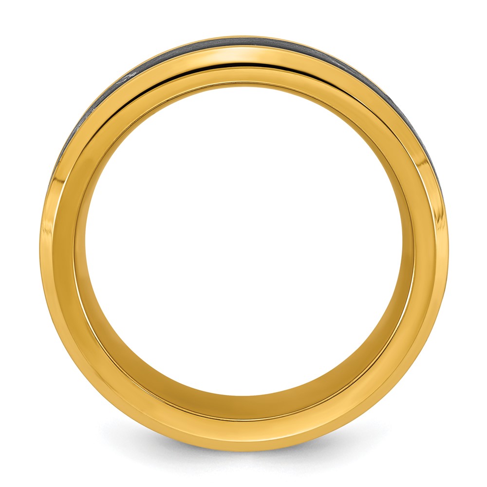 Stainless Steel Polished Yellow IP-plated Carbon Fiber Inlay 8mm Ring