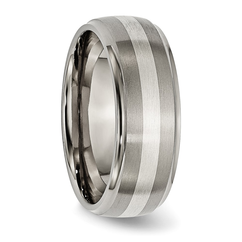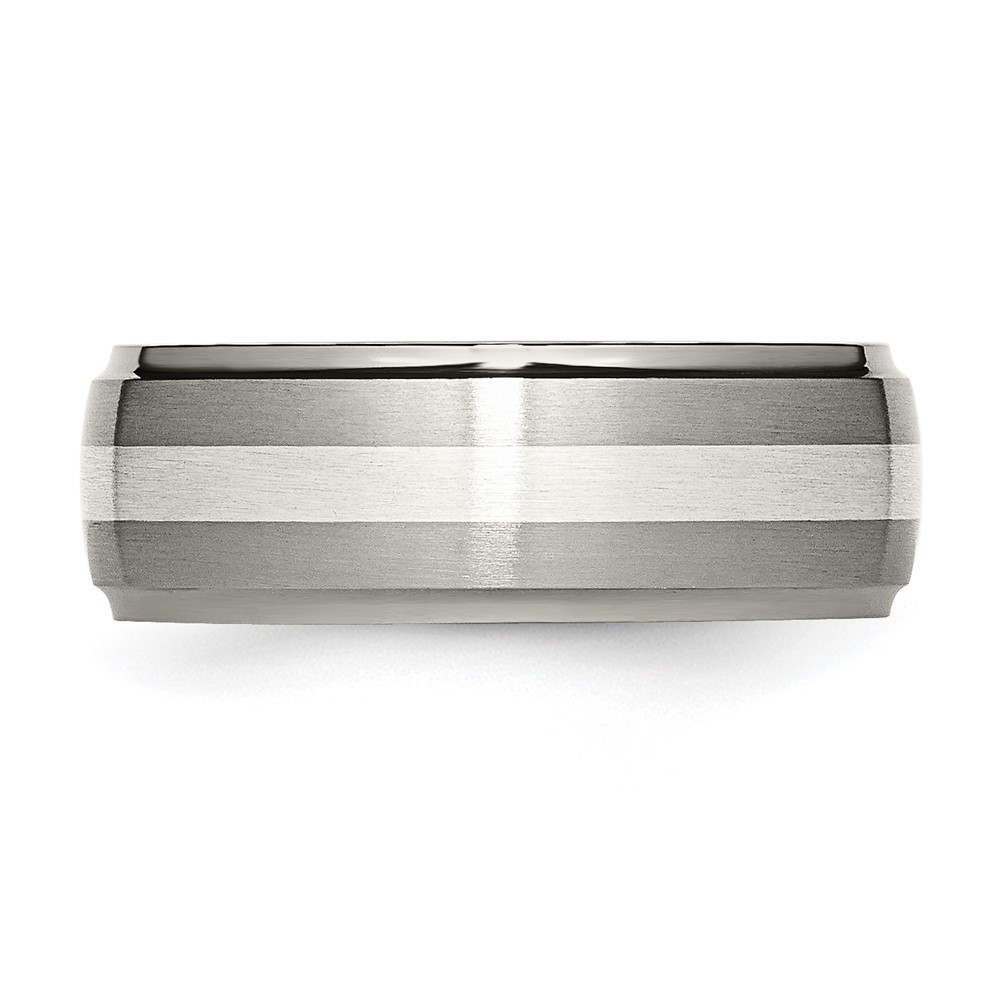 Chisel Titanium Brushed and Polished with Sterling Silver Inlay 8mm Ridged Edge Band