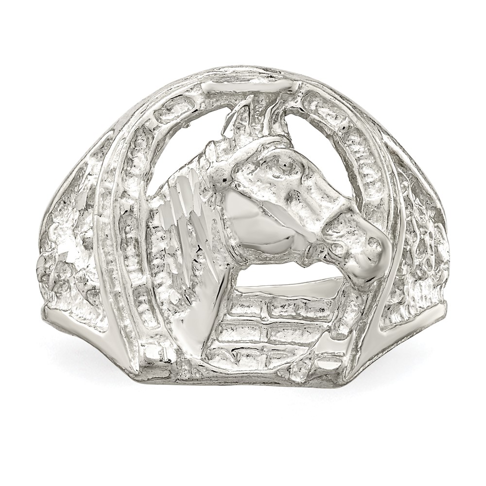 Sterling Silver Horseshoe with Horse Head Ring