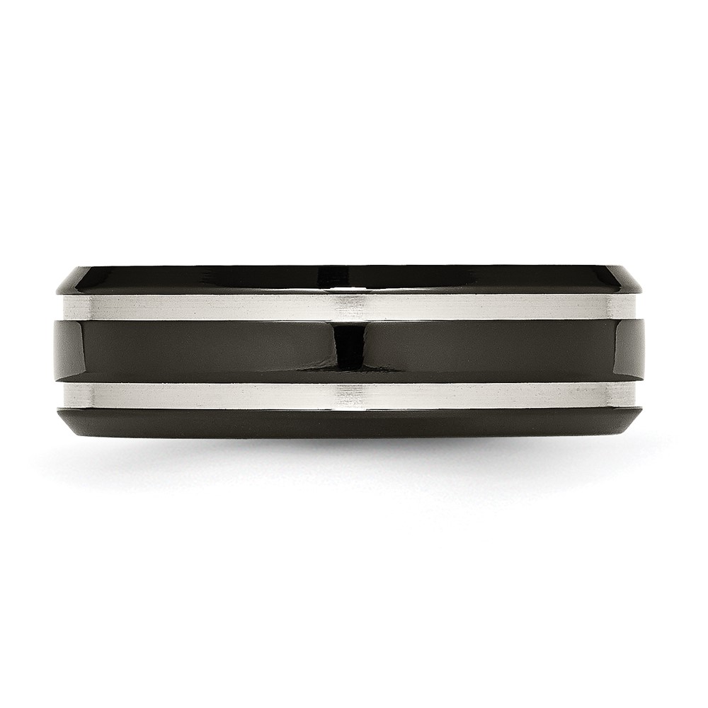 Chisel Titanium Brushed and Polished Black IP-plated 7mm Grooved Band