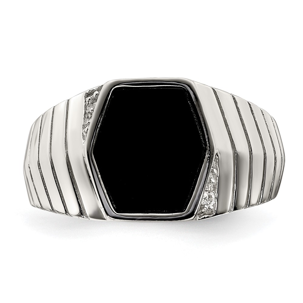 Sterling Silver Rhodium-plated Men's CZ & Onyx Ring